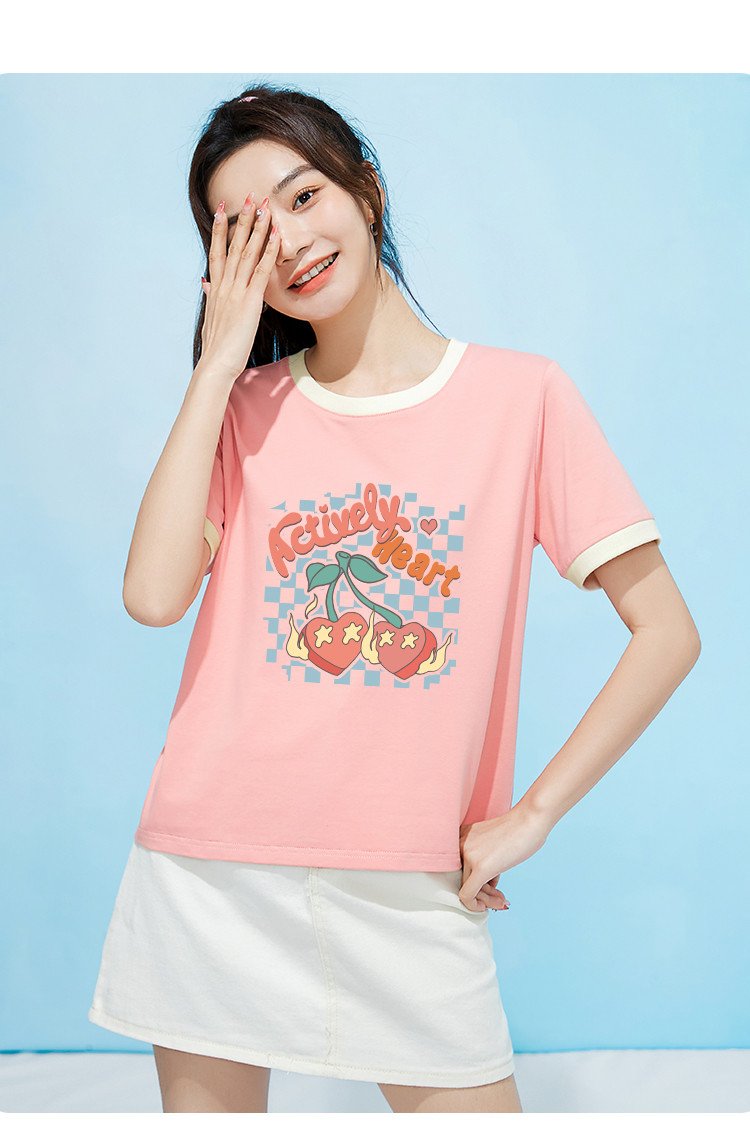 米子旗夏季款圆领女式T恤字母印花宽松短袖上衣休闲 288794