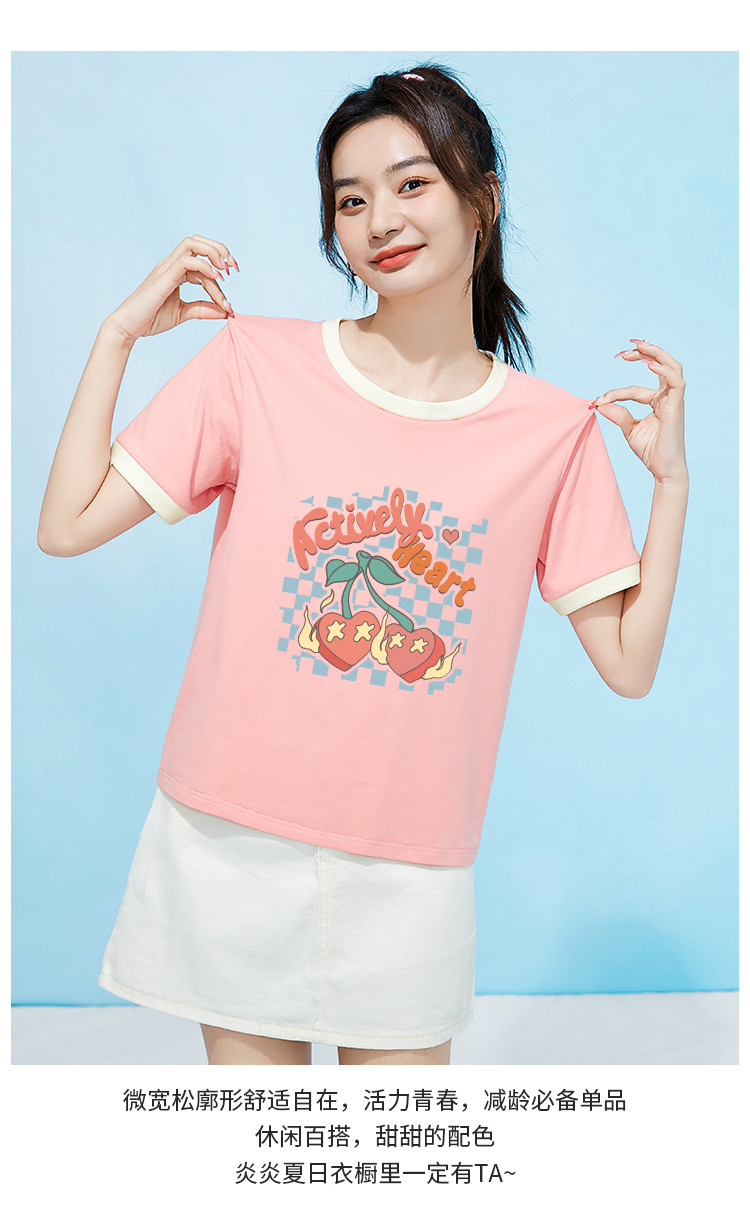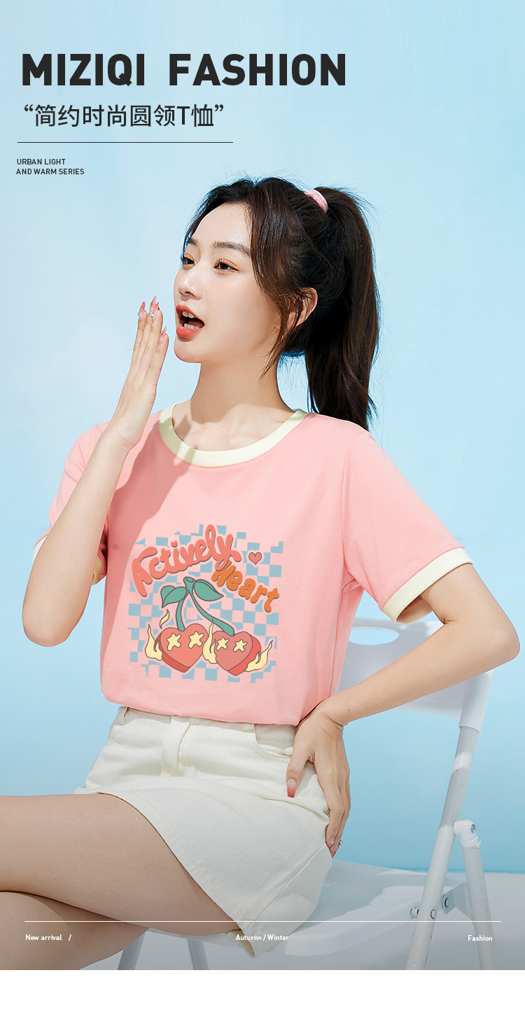 商品名称:米子旗夏季款圆领女式T恤字母印花宽松短袖上衣休闲 288794