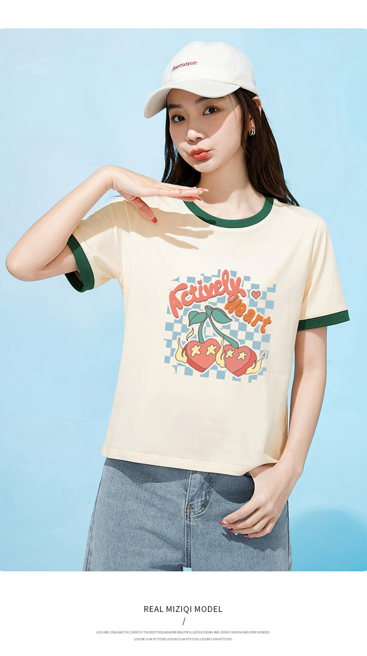 米子旗夏季款圆领女式T恤字母印花洋气修身短款上衣 569818