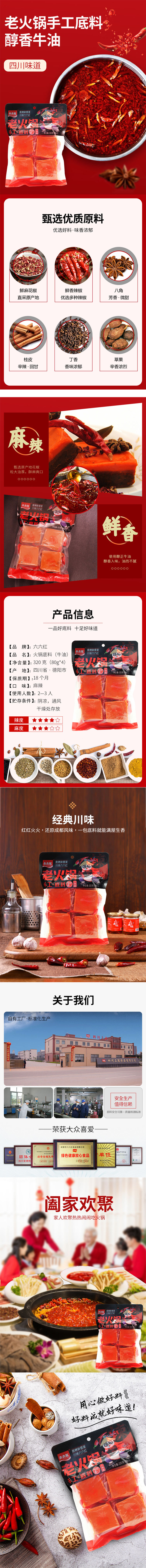 商品名称:六六红手工牛油麻辣老火锅底料320g