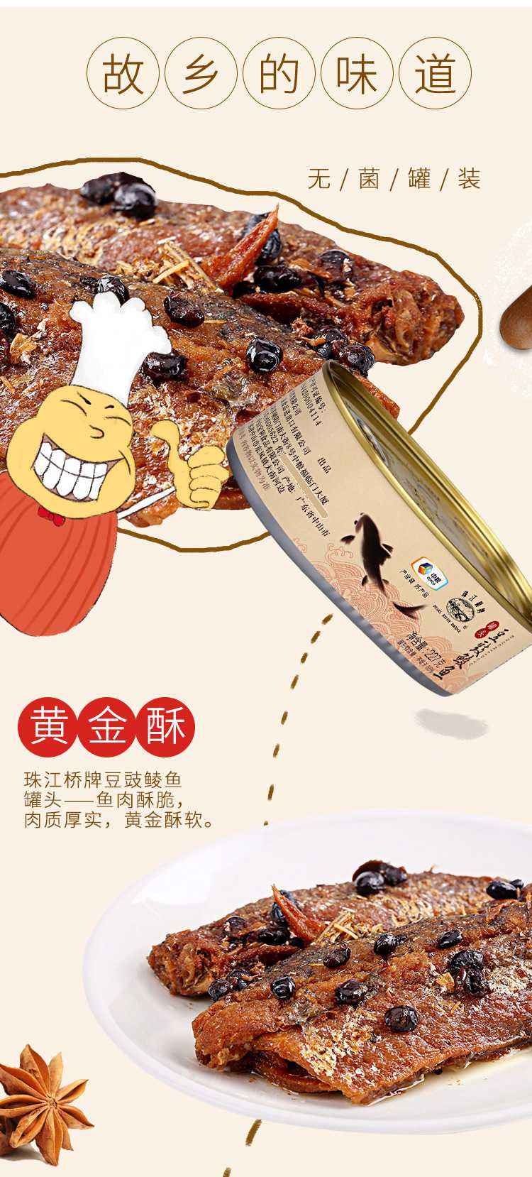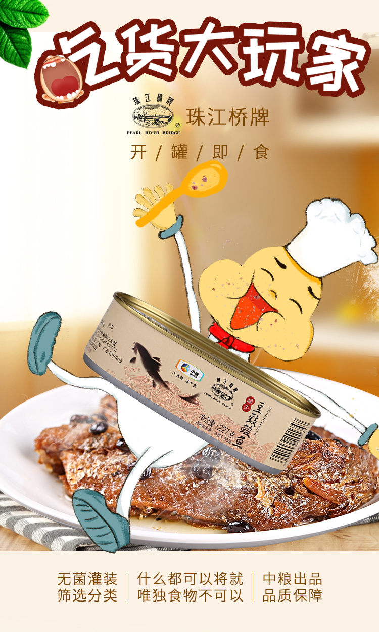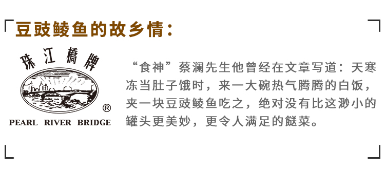 商品名称:PEARL RIVER BRIDGE/珠江桥牌豆豉鲮鱼罐头227g*2罐