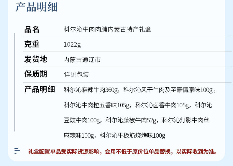商品名称:Kerchin/科尔沁内蒙古特产牛肉脯礼盒1022g