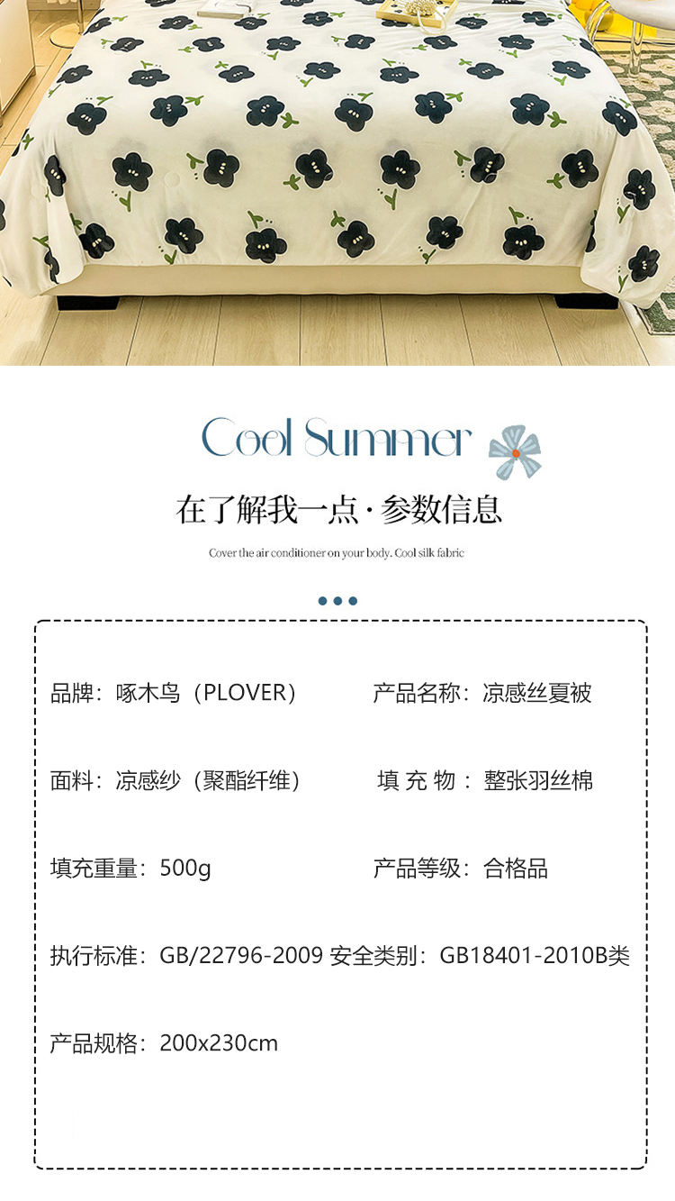 商品名称:PLOVER/啄木鸟花枝凉感丝夏被200*230cm 500g
