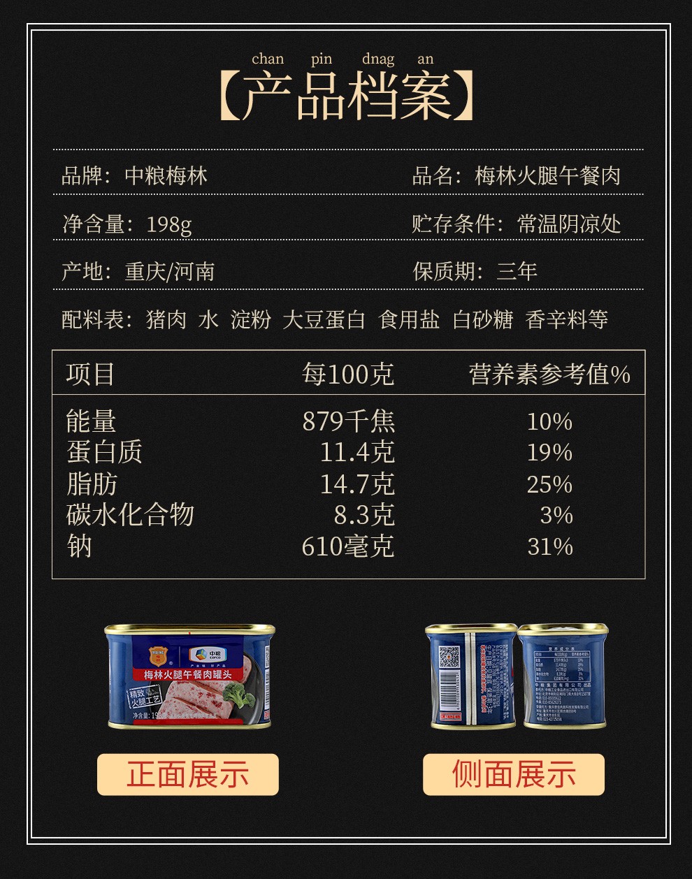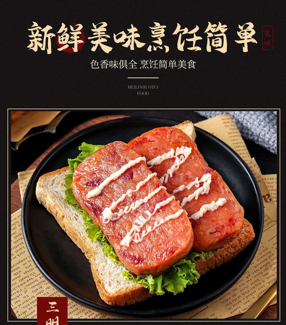 商品名称:中粮梅林火腿午餐肉罐头198g*5罐