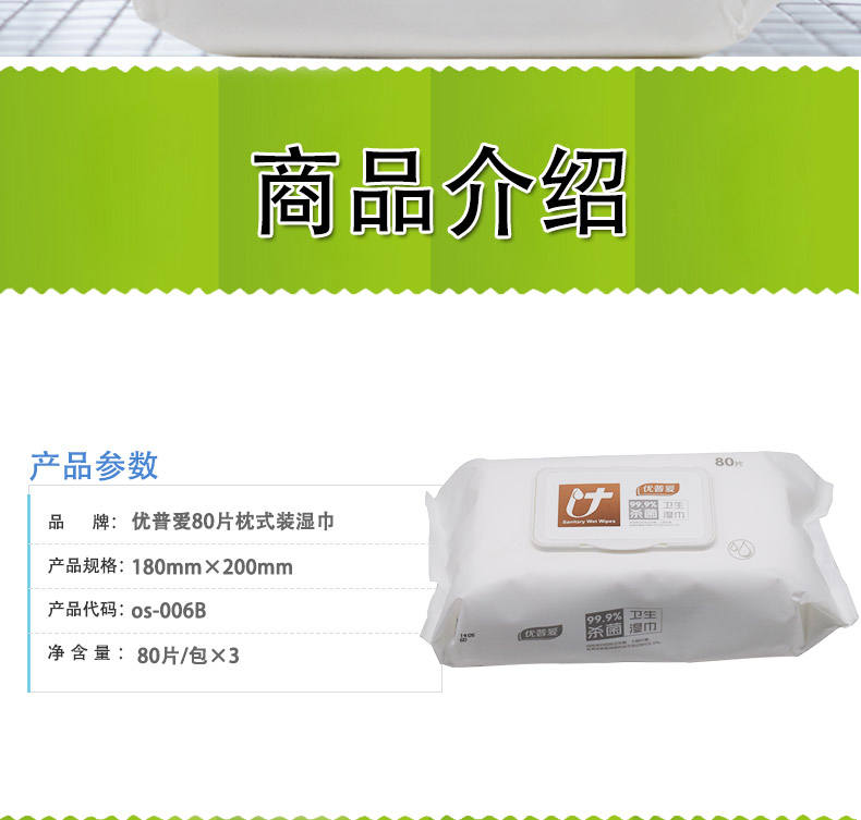 商品名称:优普爱枕式装卫生湿巾80片*3包