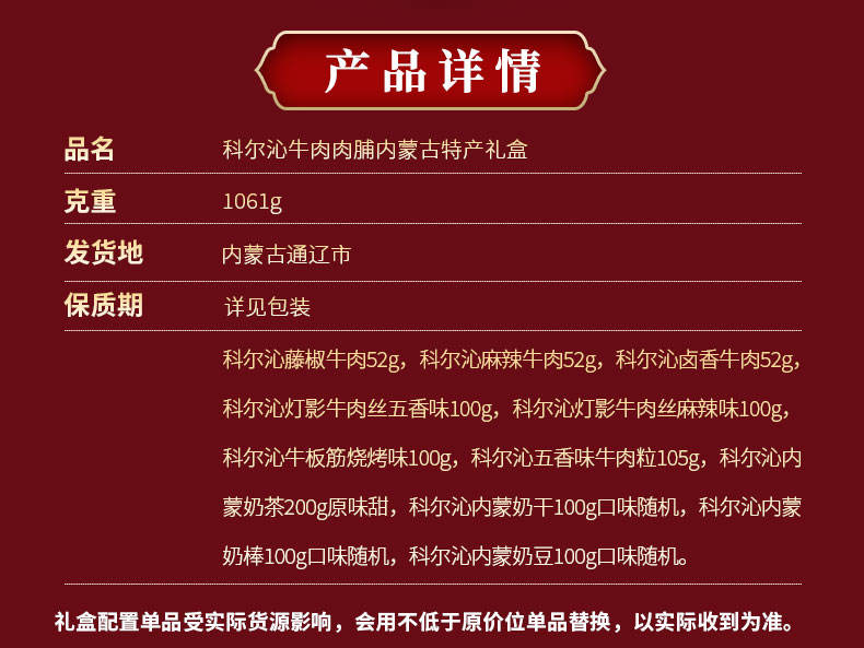 Kerchin/科尔沁内蒙古特产牛肉脯奶制品礼盒1061g