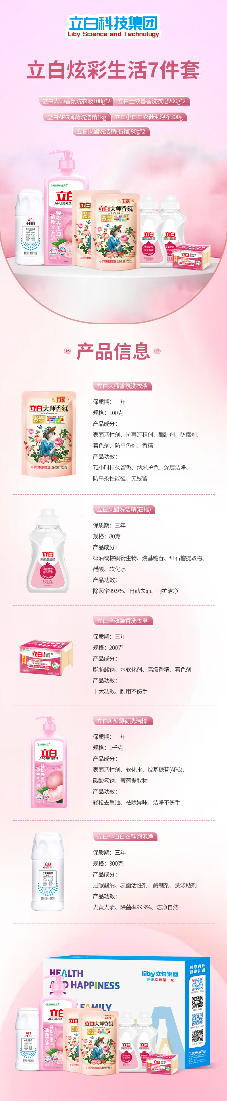商品名称:Liby/立白炫彩生活洗护用品7件套2060g