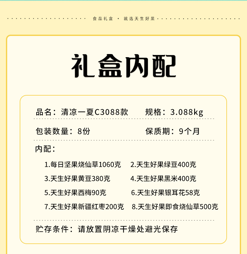 商品名称:天生好果清凉一夏食品礼盒C款3088g