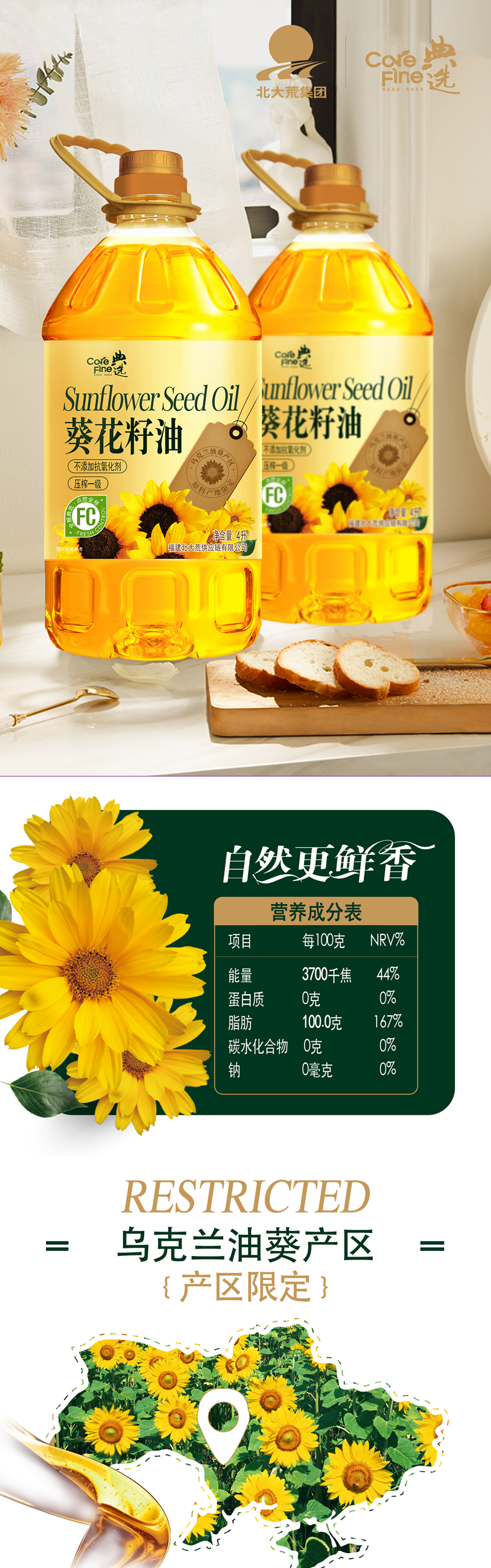 商品名称:北大荒典选压榨一级葵花籽油4L