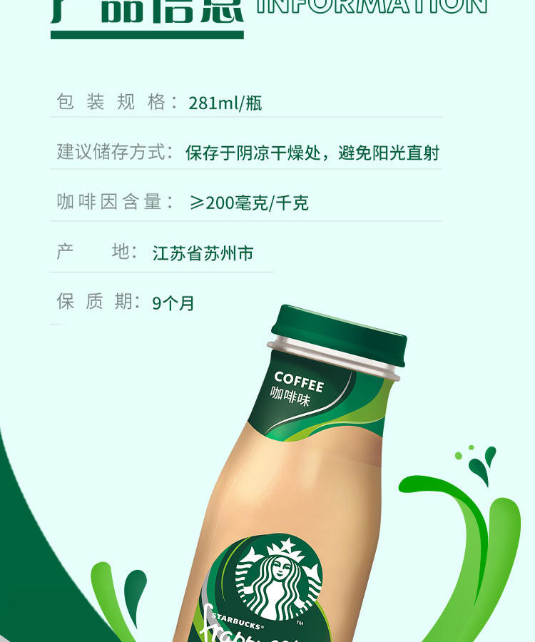 商品名称:STARBUCKS/星巴克星冰乐咖啡饮料281ml*6瓶 咖啡味