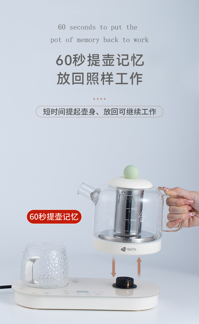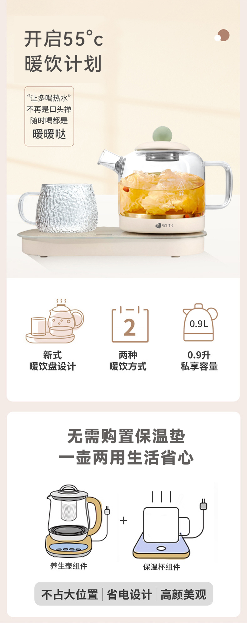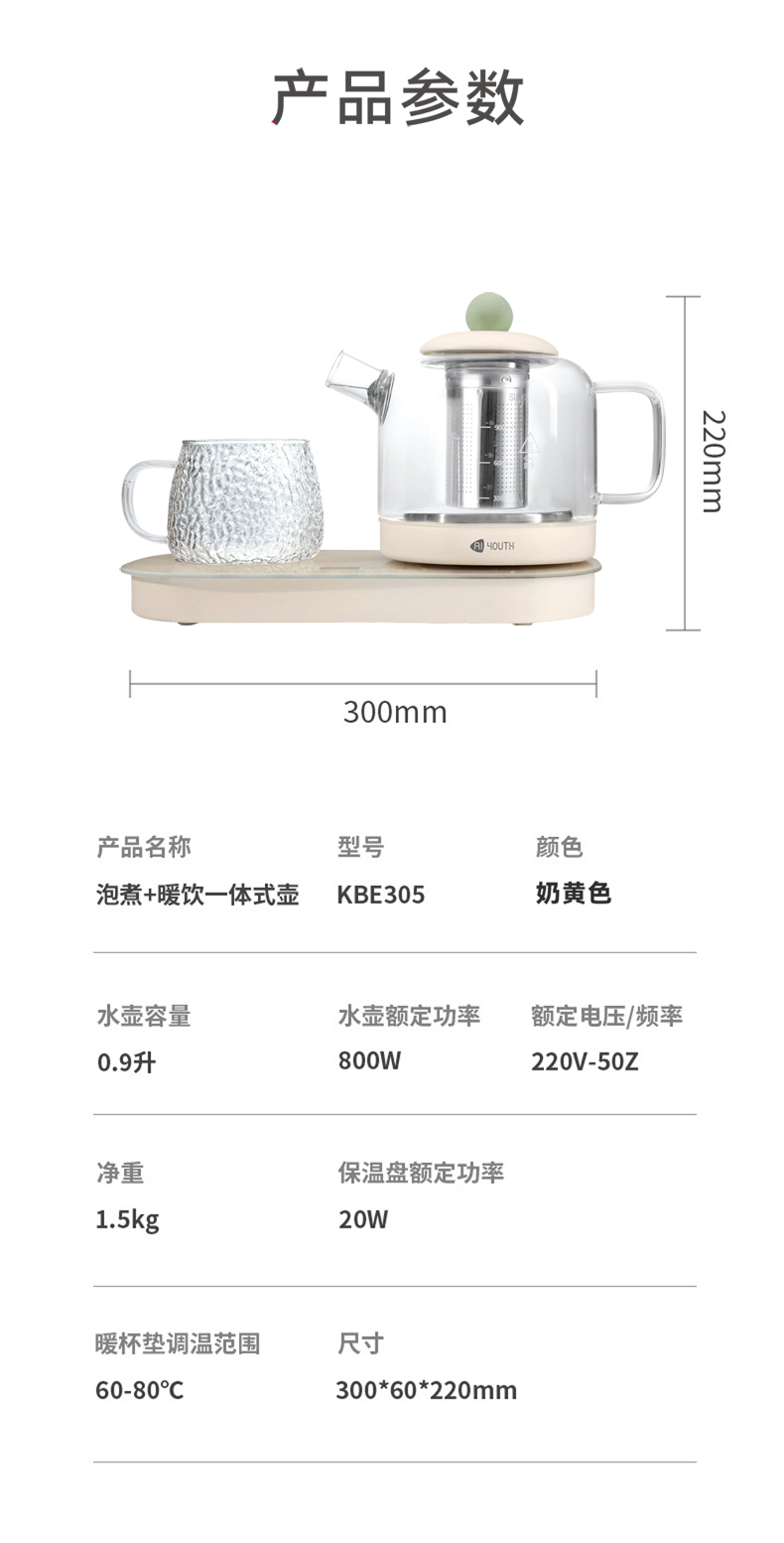 商品名称:AIYOUTH/艾青春0.9升泡煮暖饮一体式壶-奶黄色KBE305