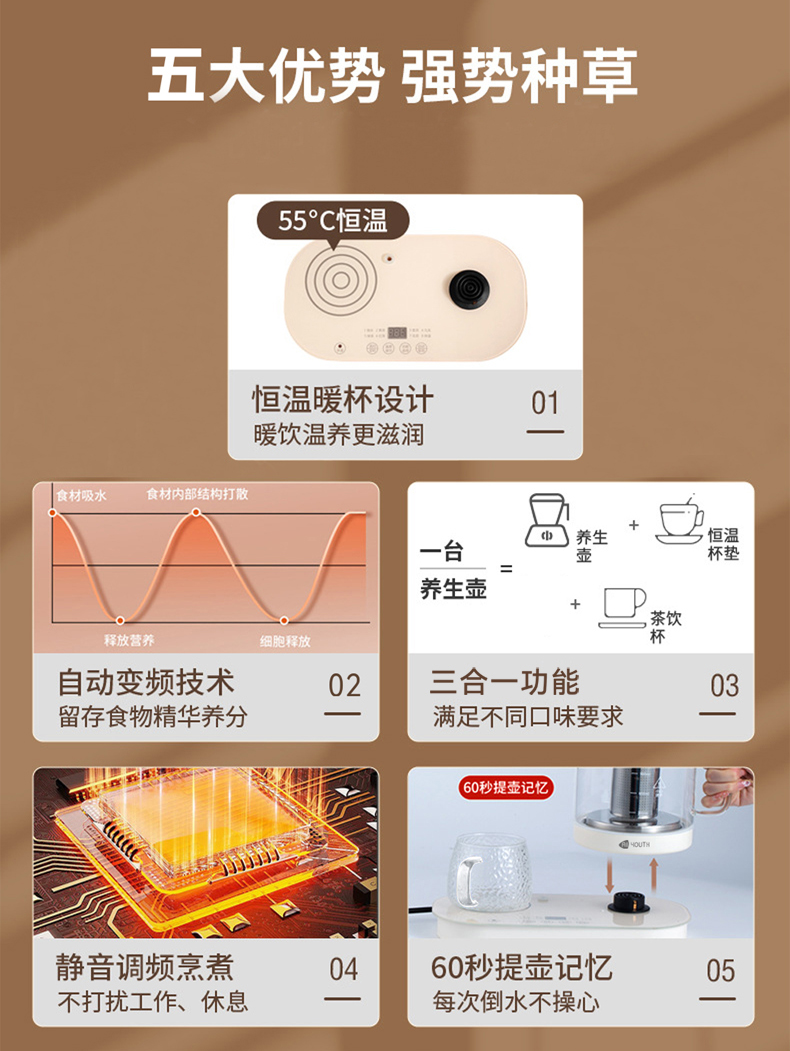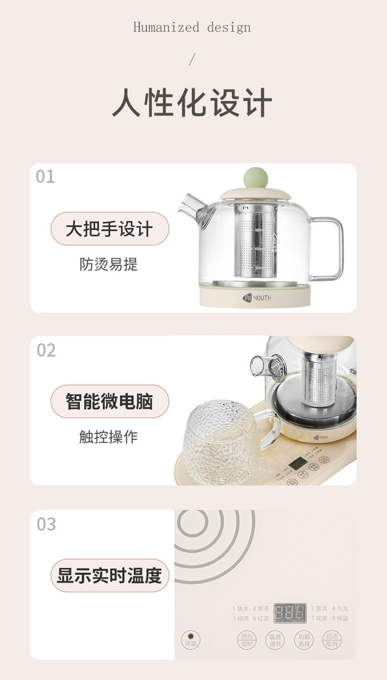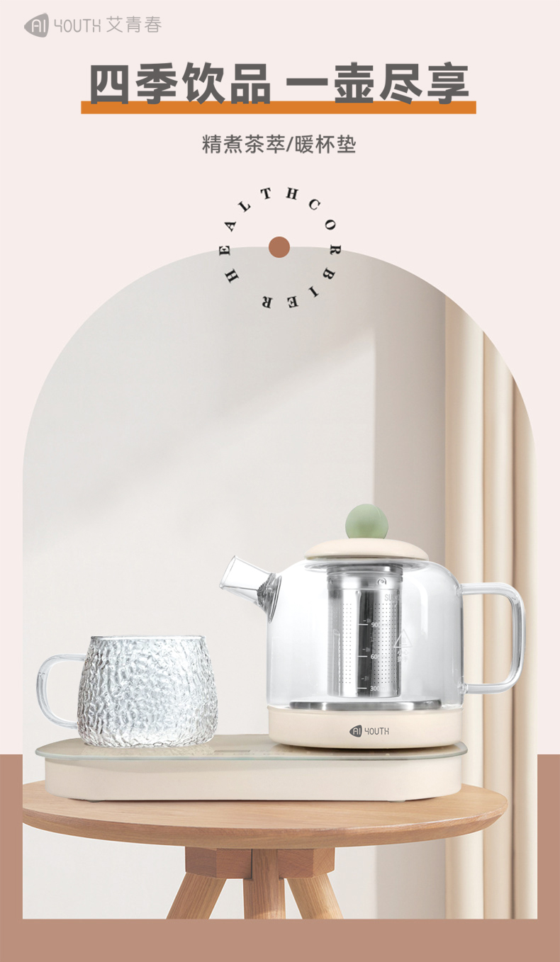 商品名称:AIYOUTH/艾青春0.9升泡煮暖饮一体式壶-奶黄色KBE305