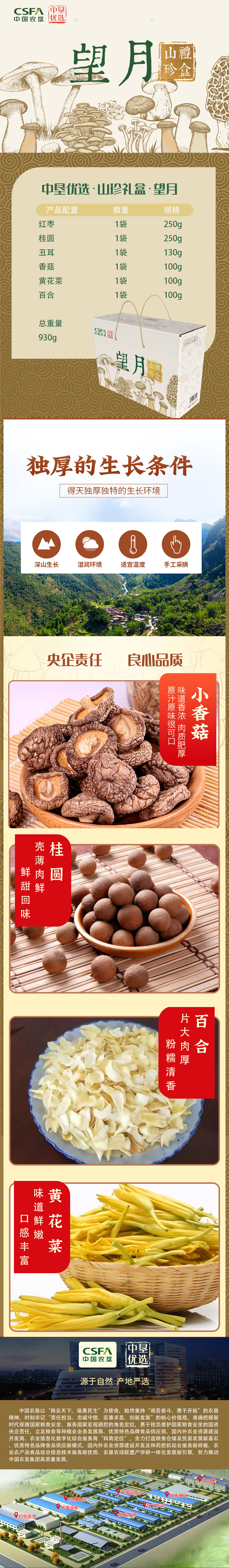 商品名称:【京东/德邦配送】CSFA/中国农垦中垦优选望月山珍礼盒930g