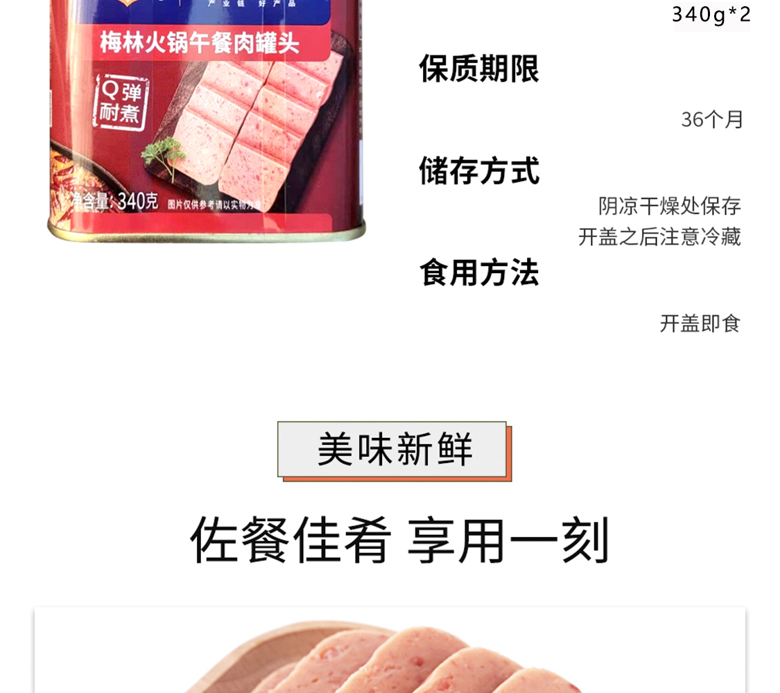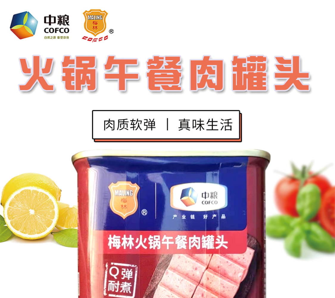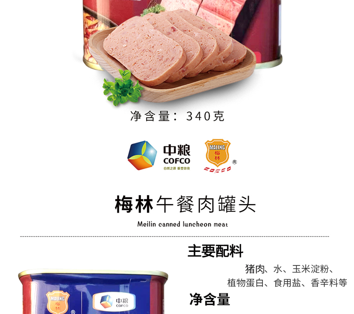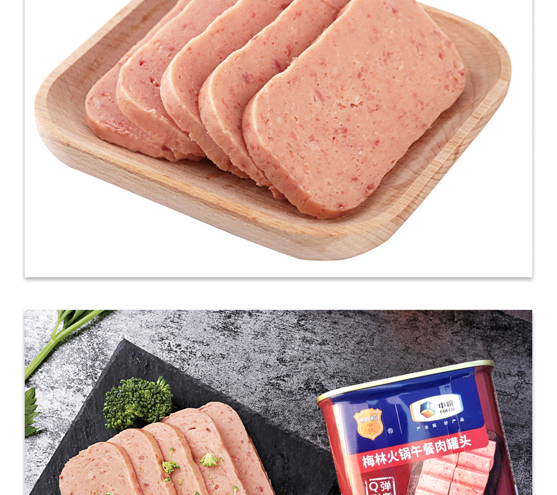 商品名称:中粮梅林火锅午餐肉罐头340g*2罐