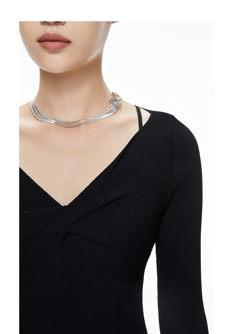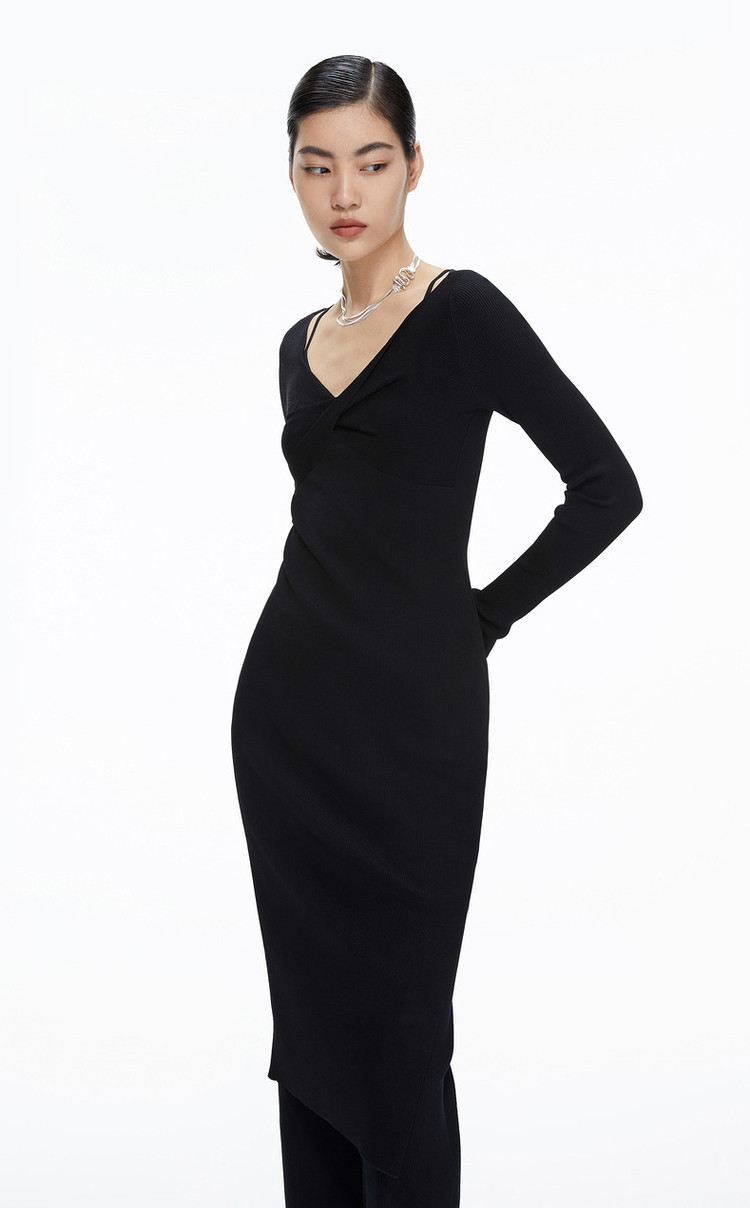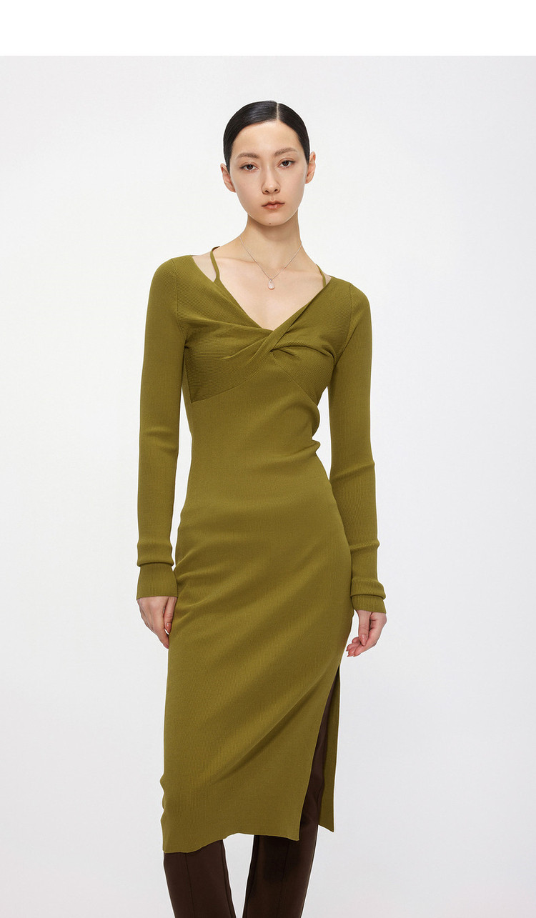 商品名称:春连衣裙针织修身V领裙装女 280715