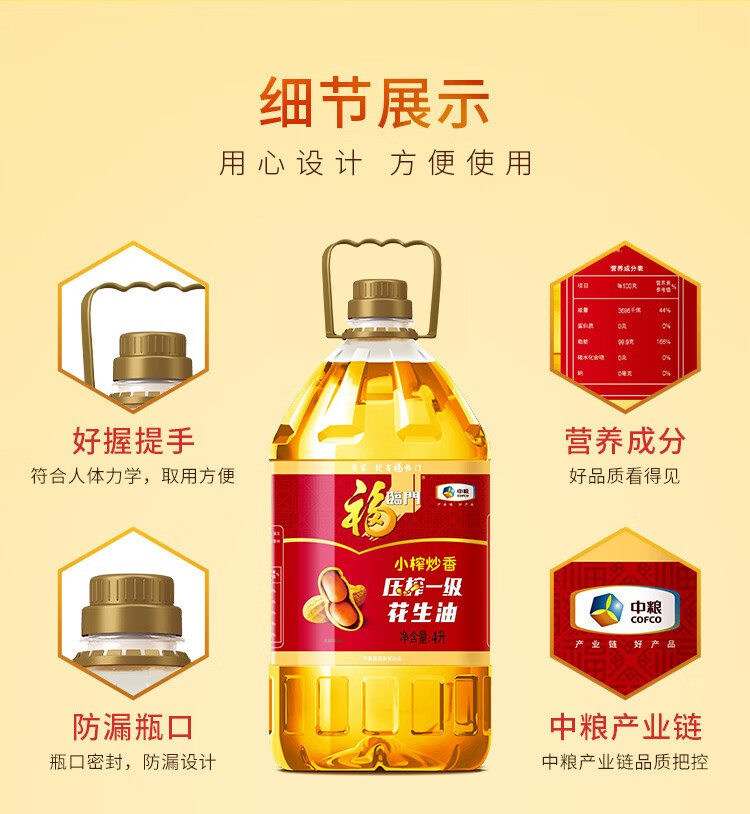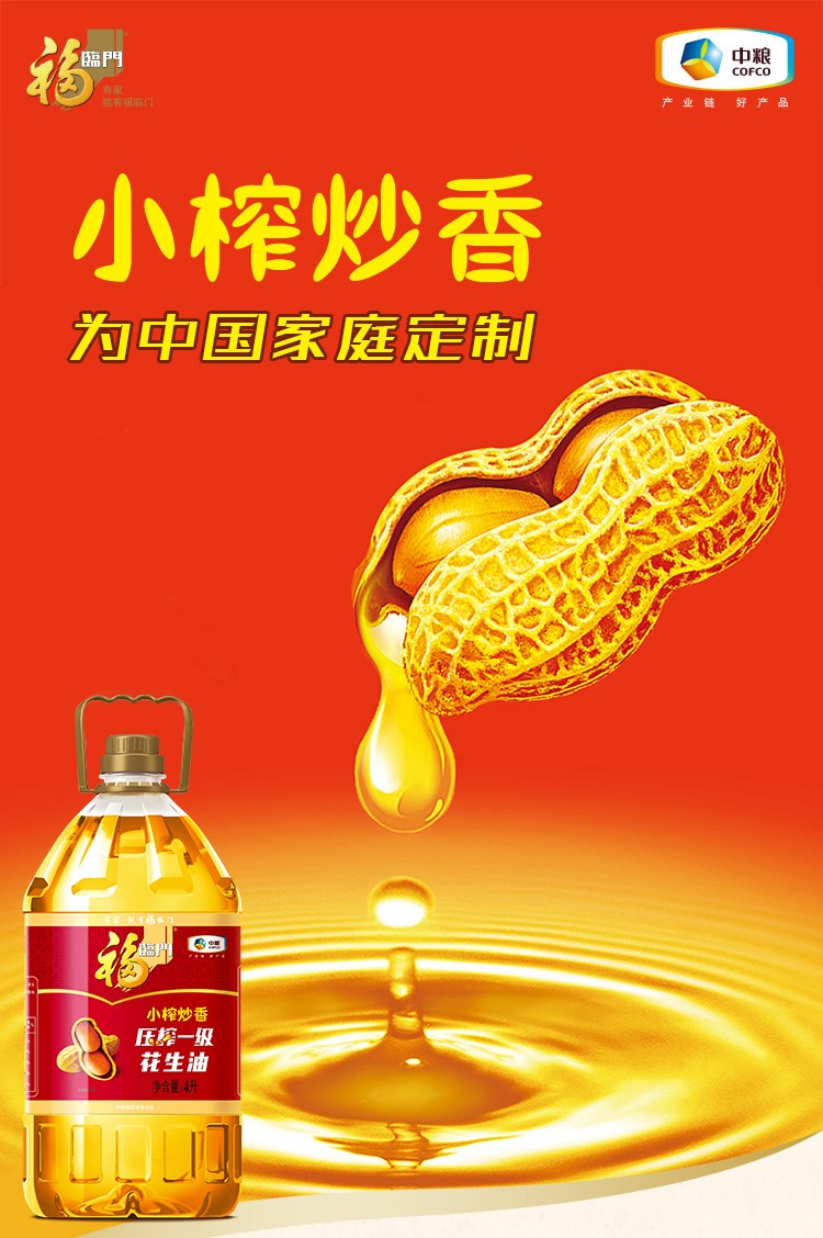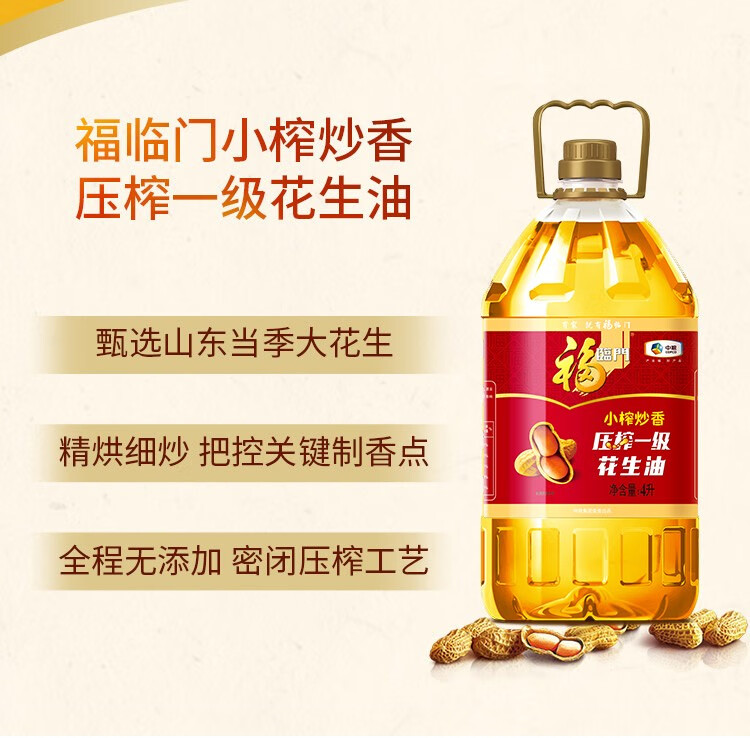 商品名称:中粮福临门小榨炒香压榨一级花生油4L