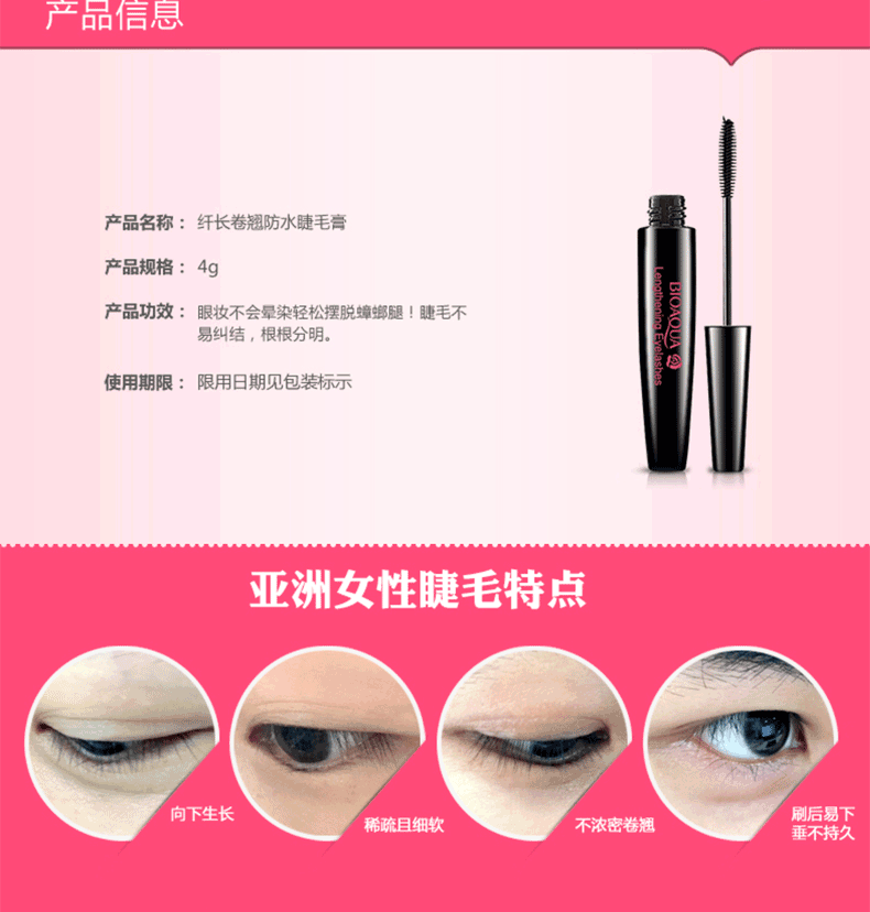 商品名称:泊泉雅纤长卷翘防水睫毛膏 不易晕染浓密根根分明 8g