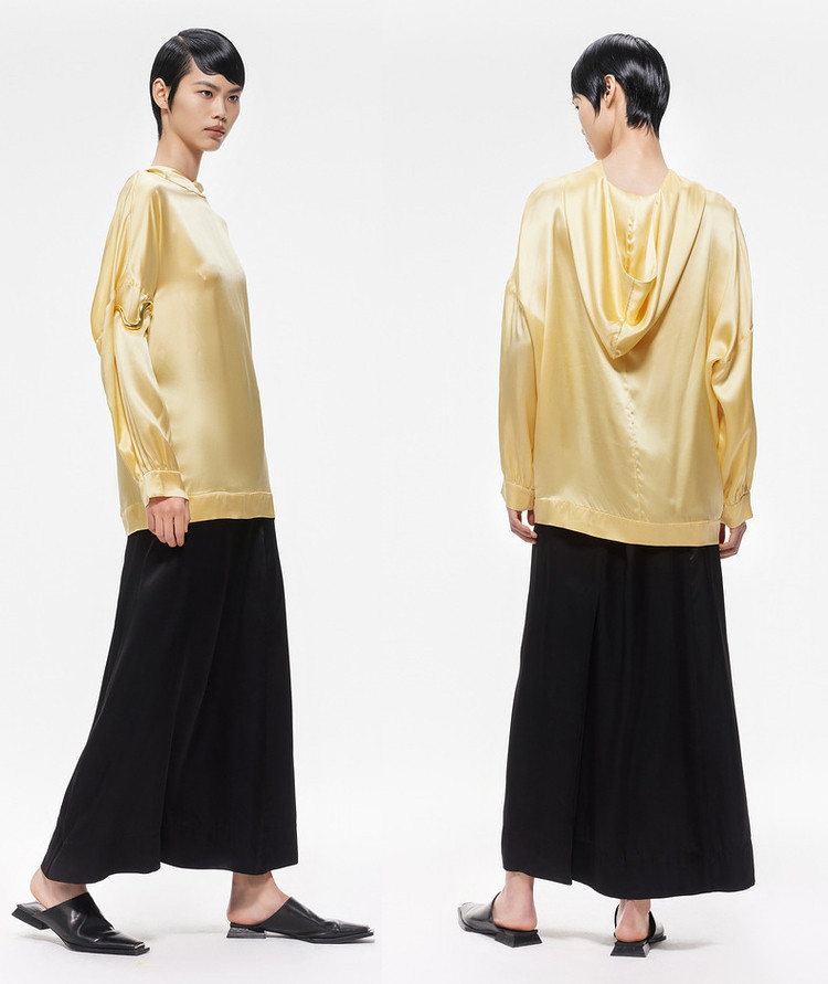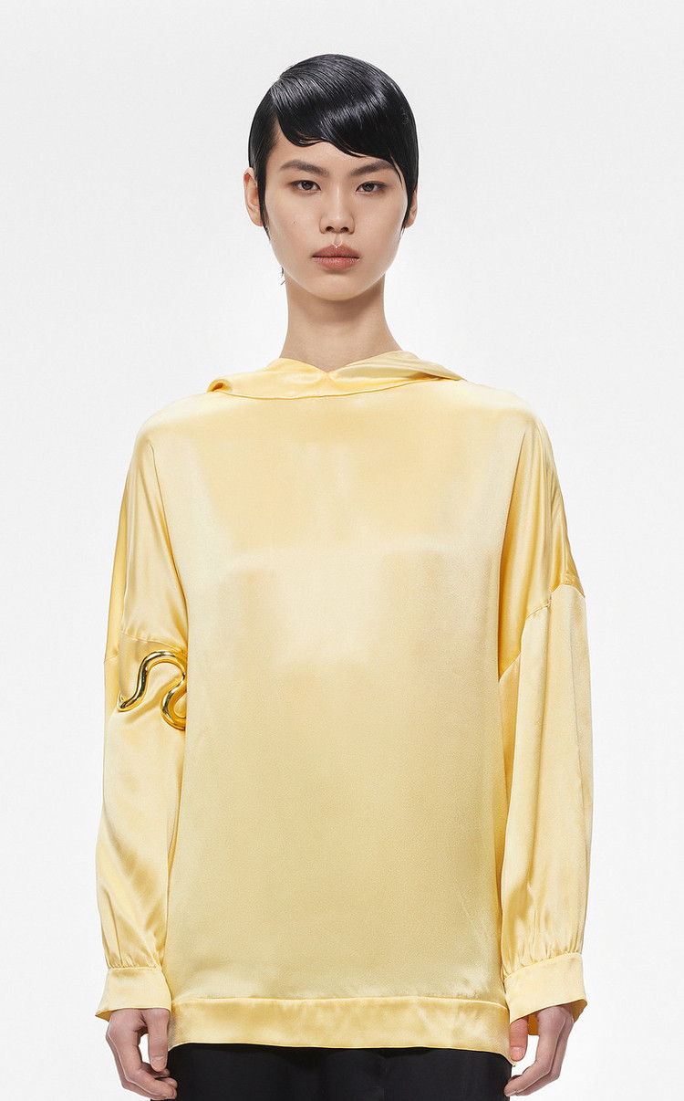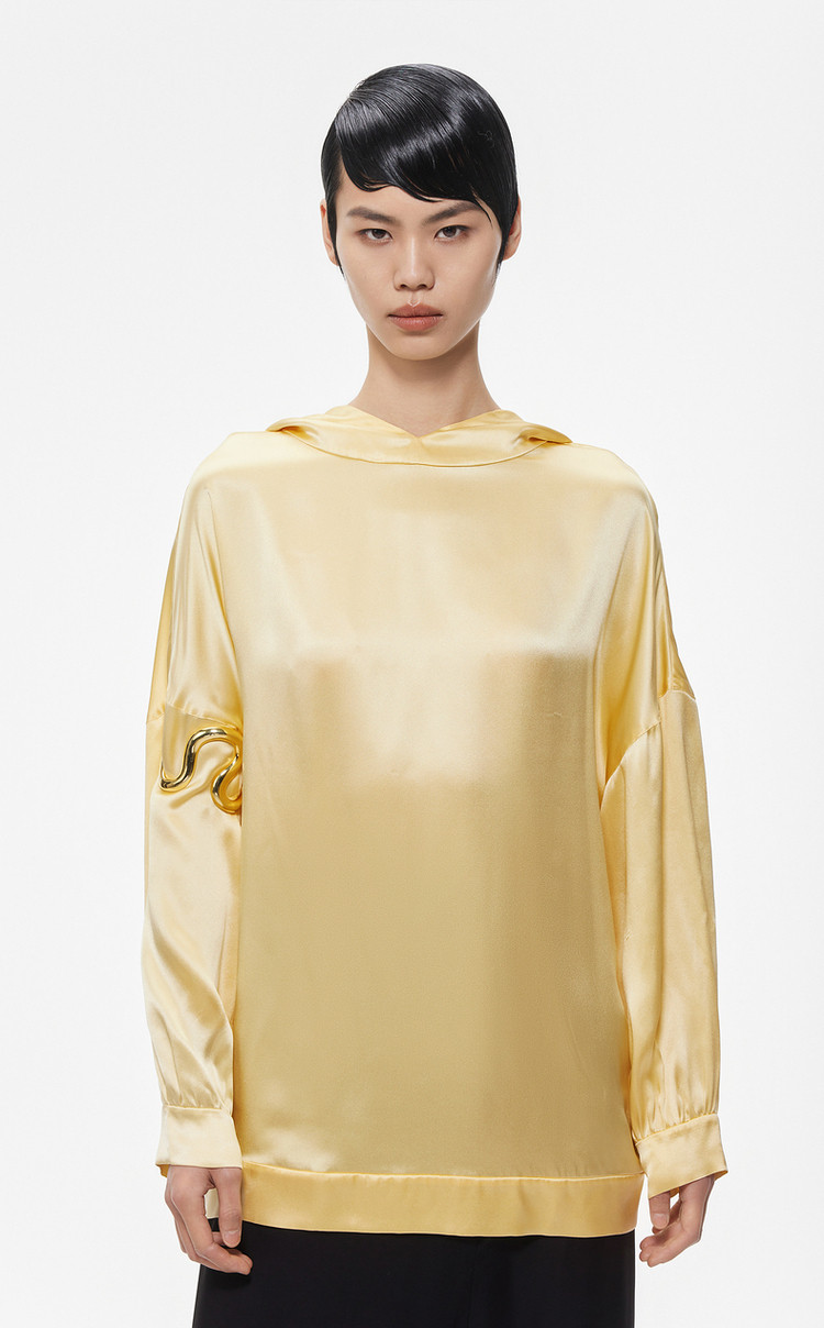 春衬衫桑蚕丝宽松连帽衬衣女 465291