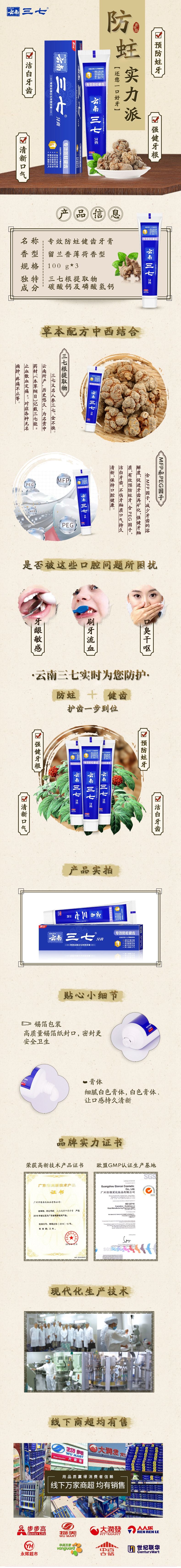 商品名称:云南三七专效防蛀健齿牙膏-留兰薄荷香型100g*3支