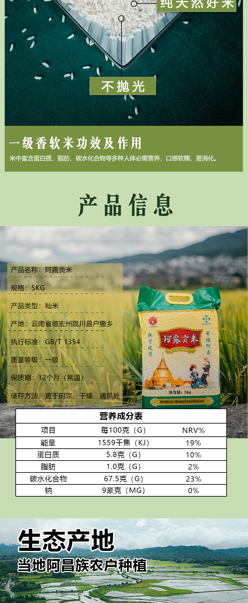 商品名称:阿露窝罗阿露贡米香软米5kg
