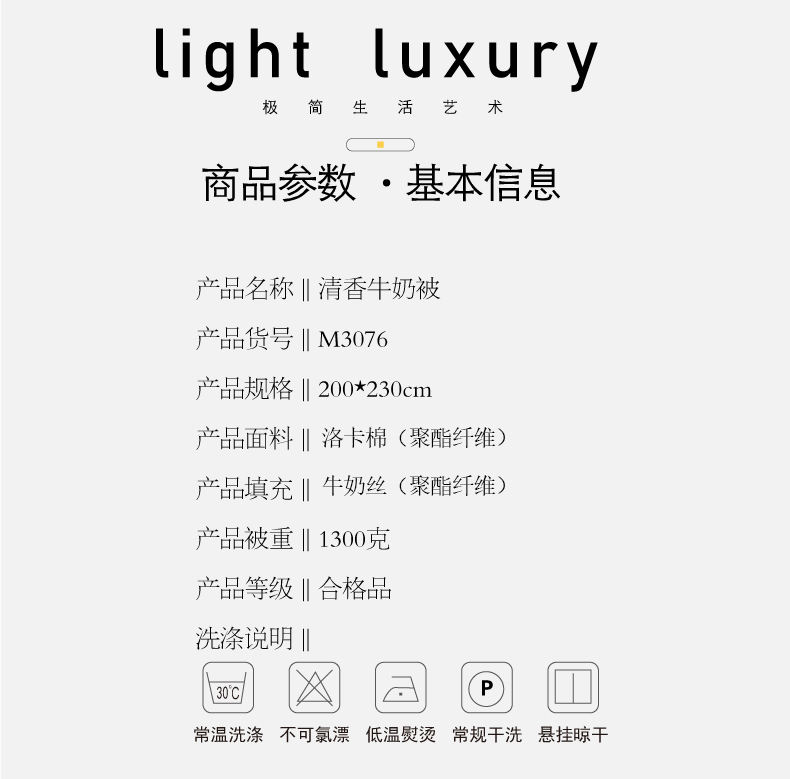 商品名称:M-RANDON/美缘登清香牛奶被200*230cm 1300g