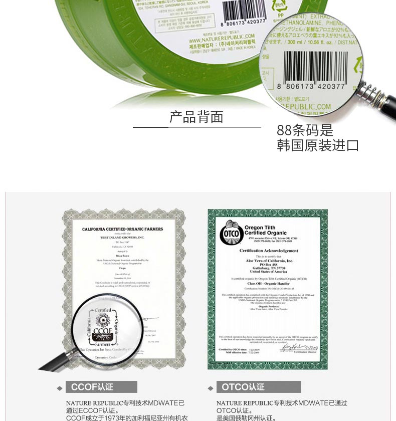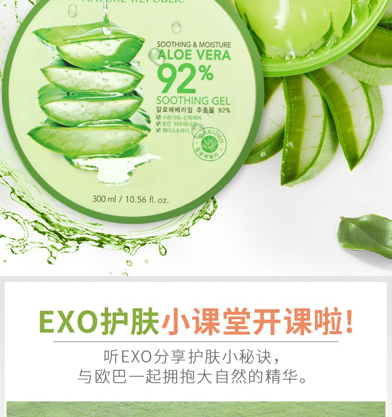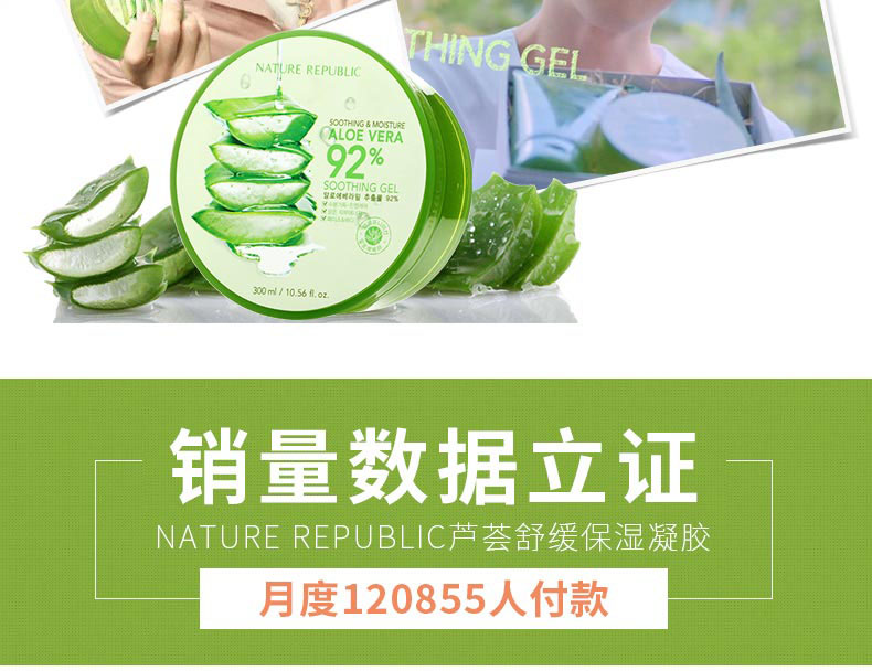 商品名称:NATURE REPUBLIC/自然乐园芦荟舒缓保湿凝胶300ml*2罐(本土版)