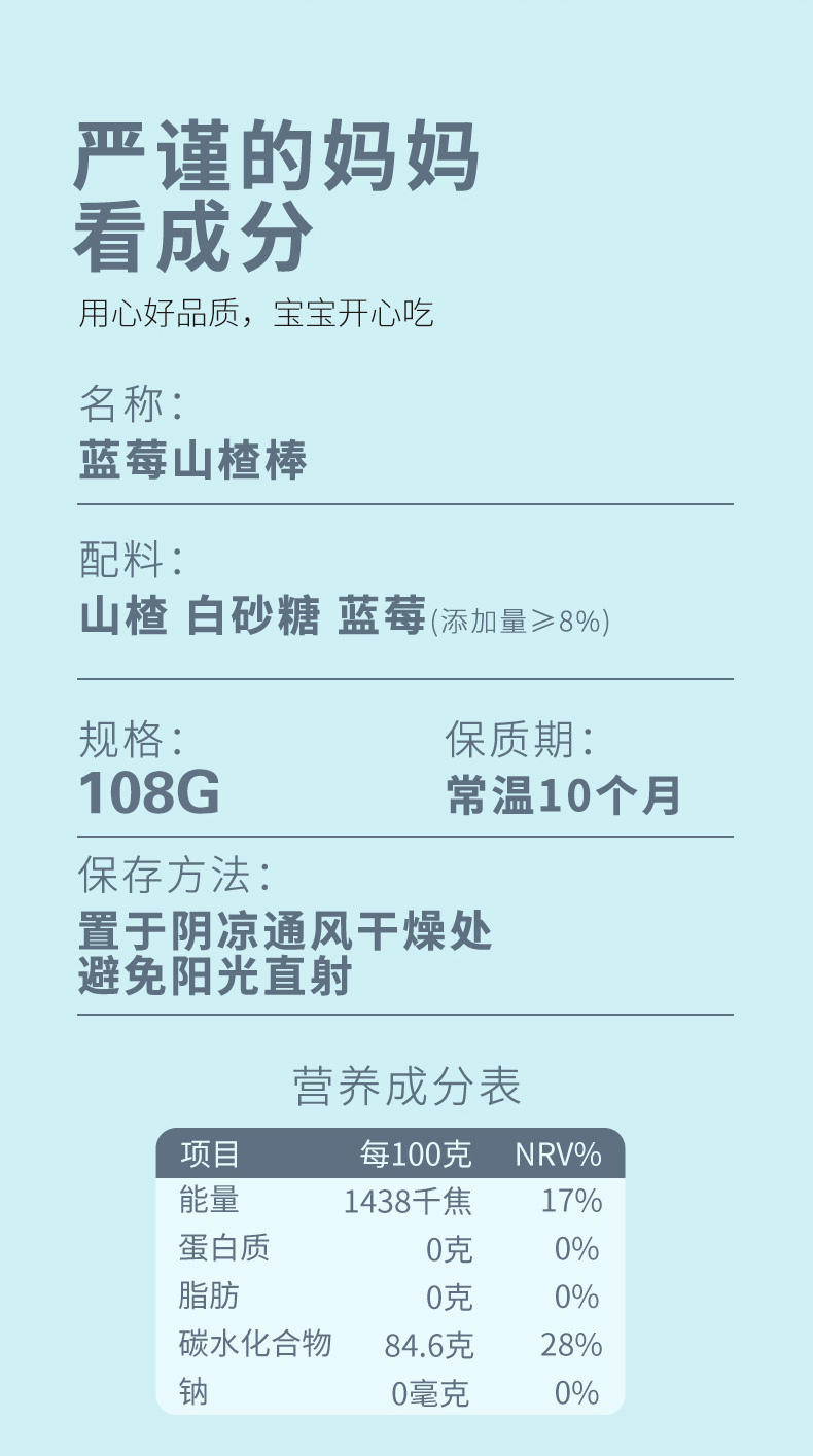 规格:金晔蓝莓山楂棒108g*3袋
