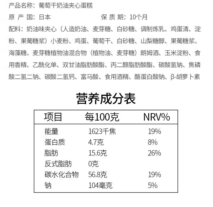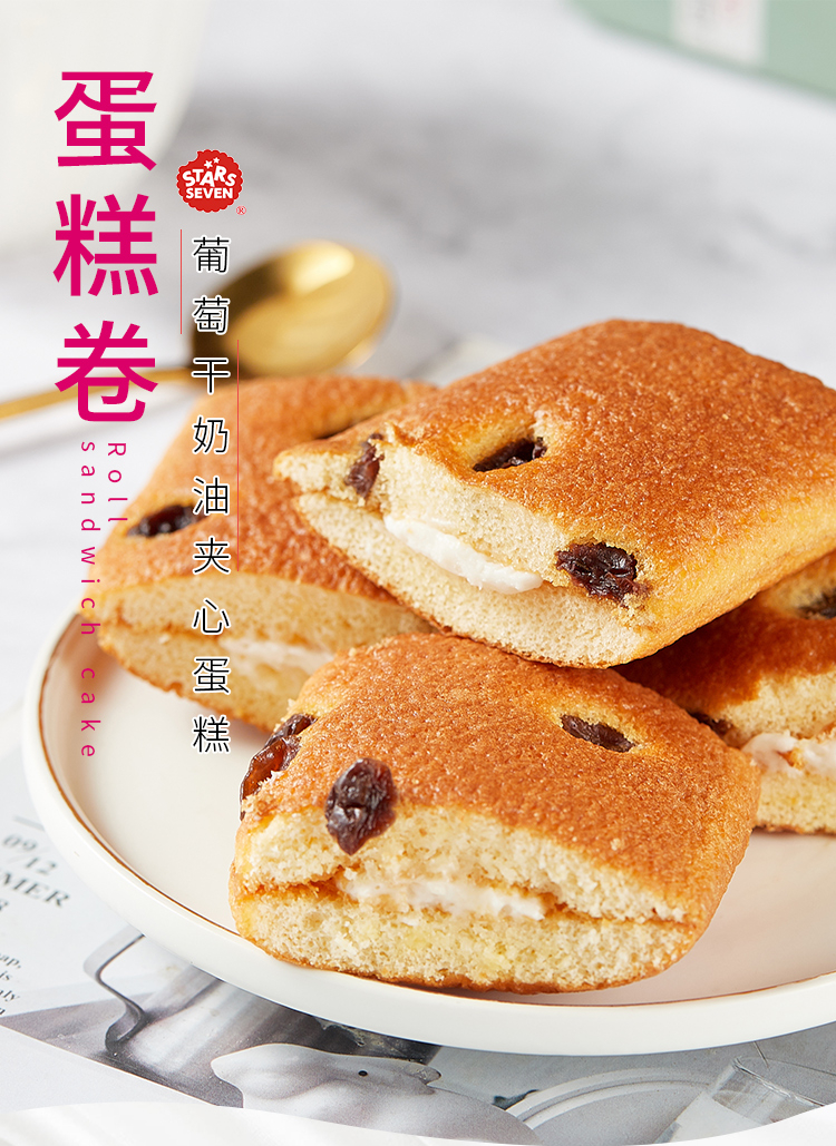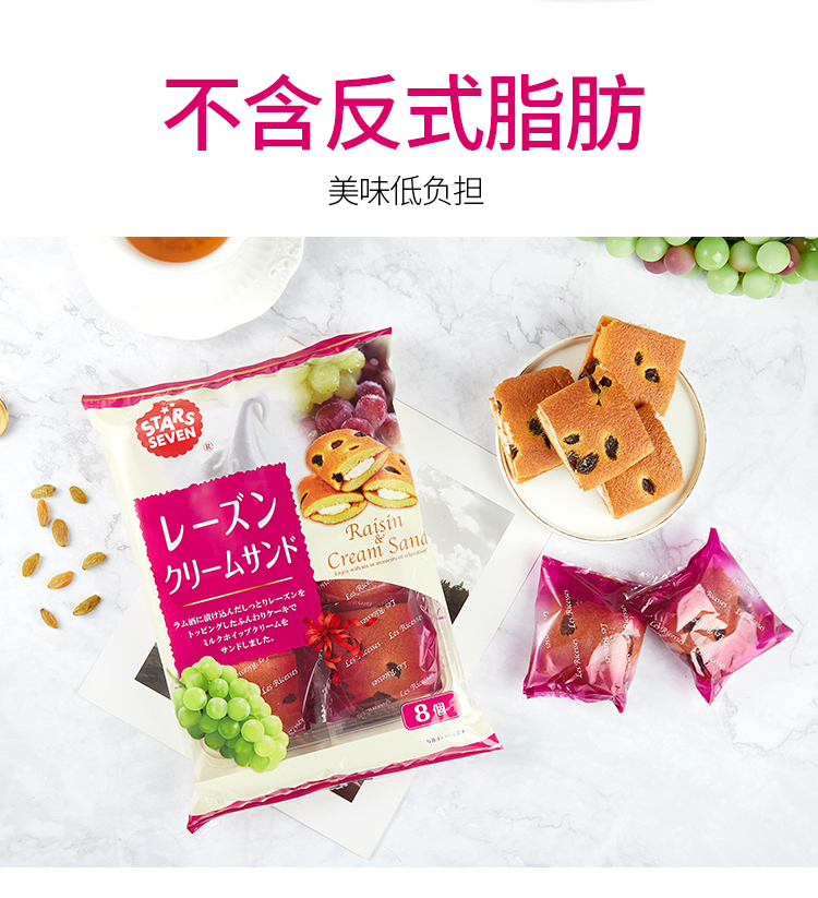 商品名称:STARS SEVEN星七牌日本进口葡萄干奶油味夹心蛋糕172g*2袋