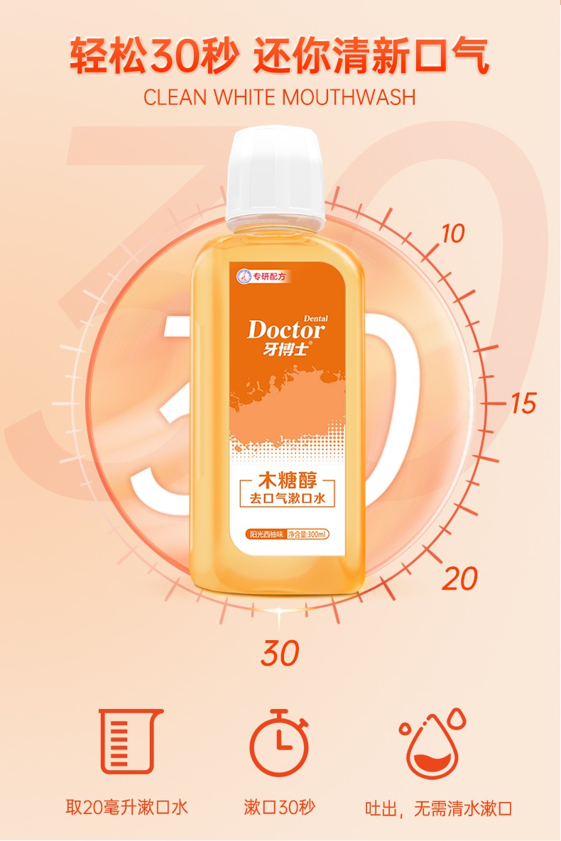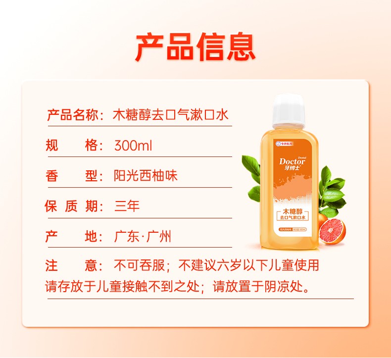 商品名称:Doctor/牙博士木糖醇去口气漱口水-西柚味300ml*3瓶