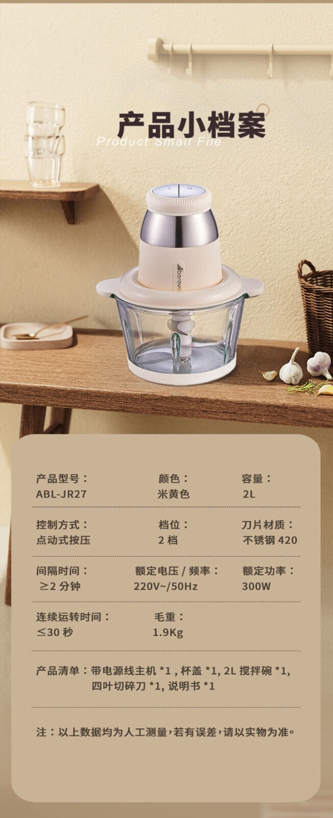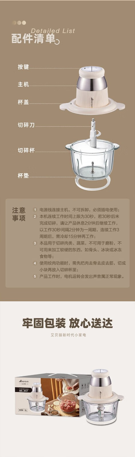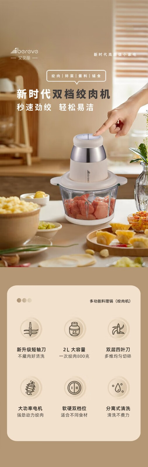 商品名称:ABEREVE/艾贝丽2升多功能绞肉机-米黄色ABL-JR27