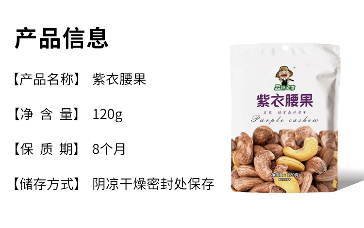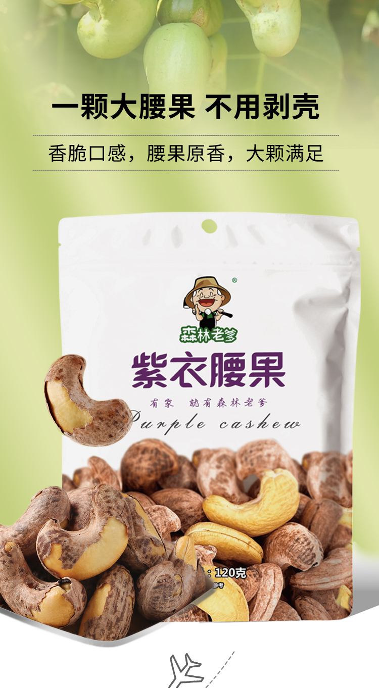商品名称:森林老爹紫衣腰果120g*3袋