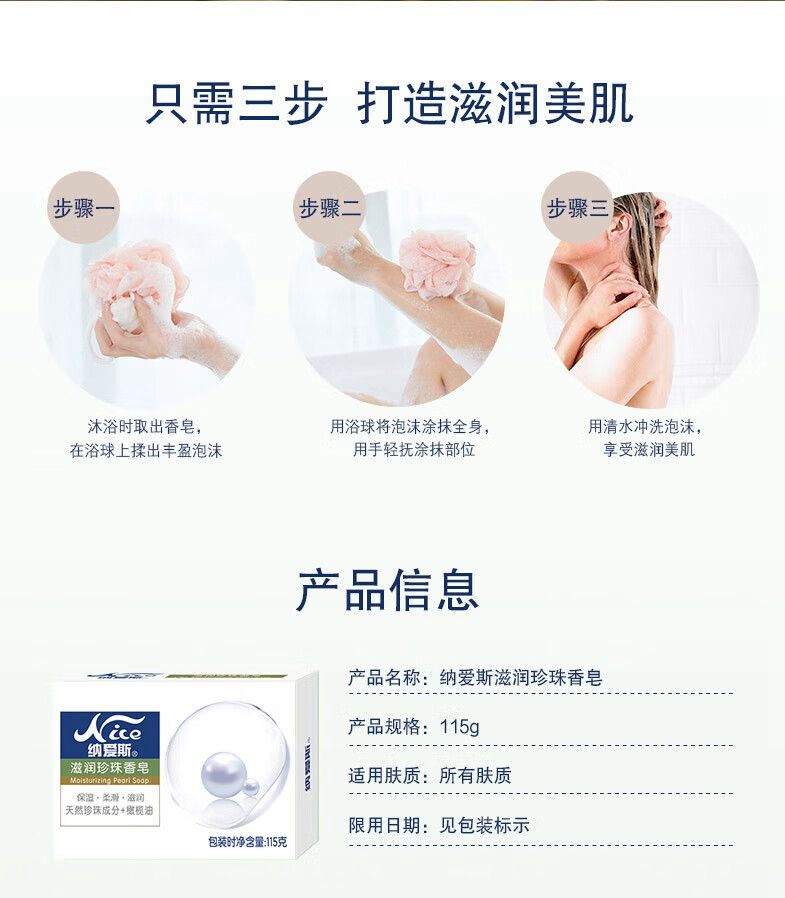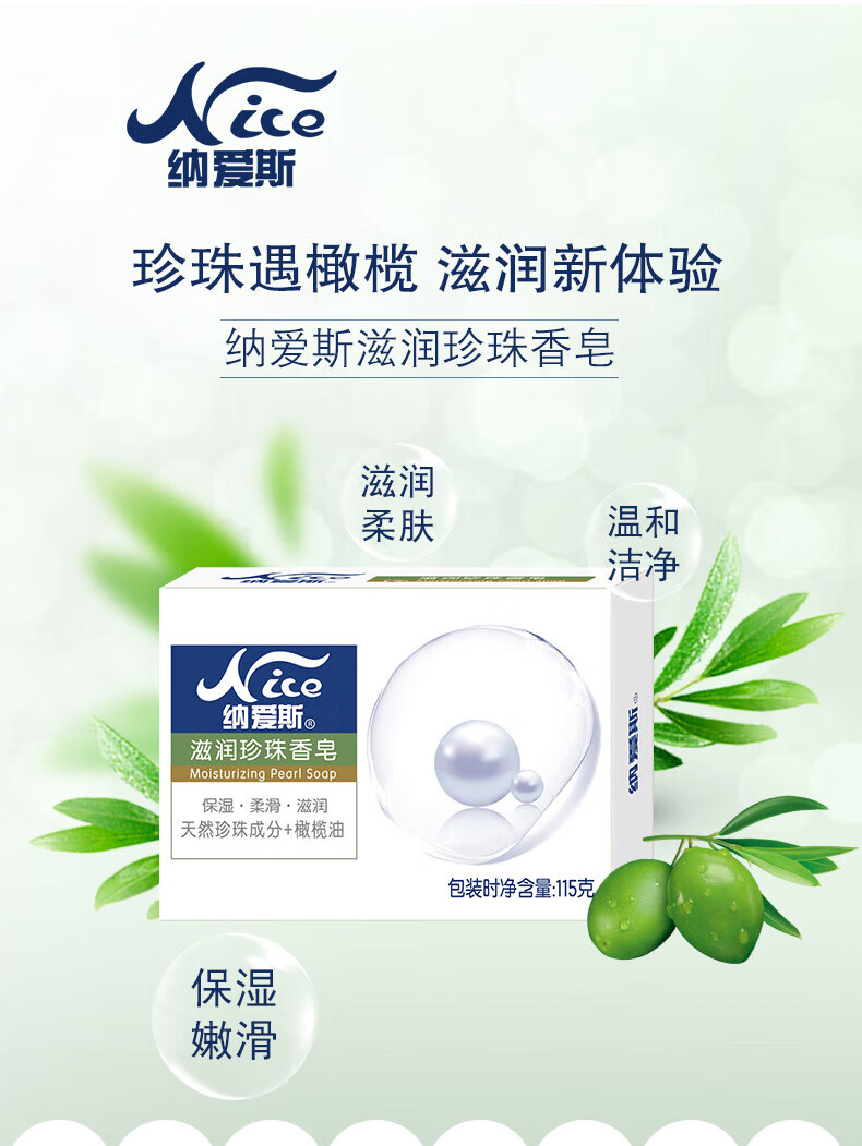商品名称:纳爱斯滋润珍珠香皂115g*4盒