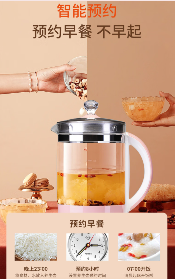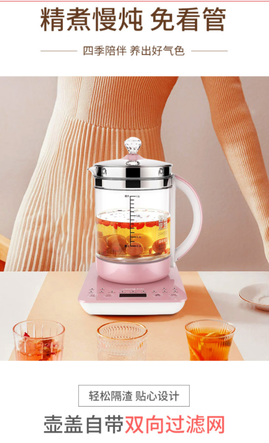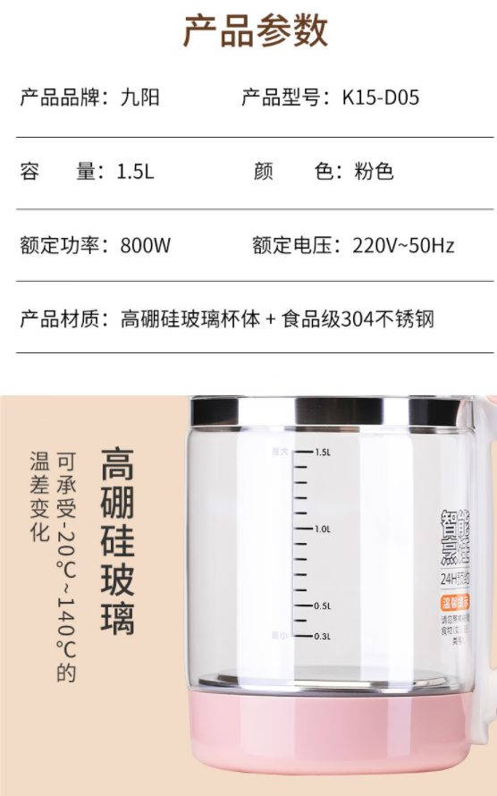 商品名称:Joyoung/九阳1.5升多功能养生壶-粉色K15-D05