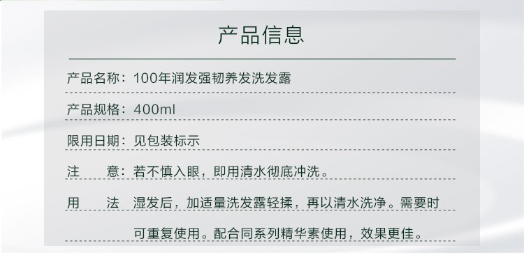 商品名称:100年润发强韧养发洗发露400ml