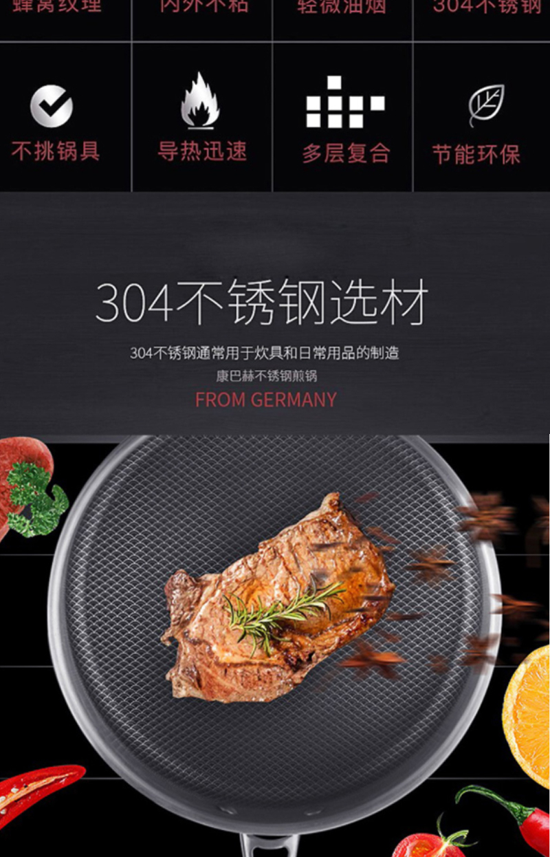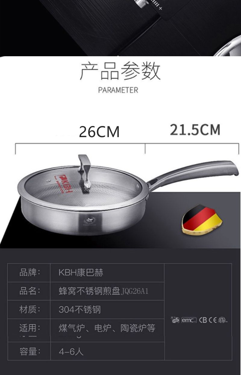 商品名称:KOBACH/康巴赫26cm蜂窝不锈钢煎盘JQG26A1