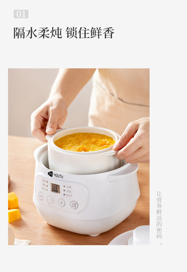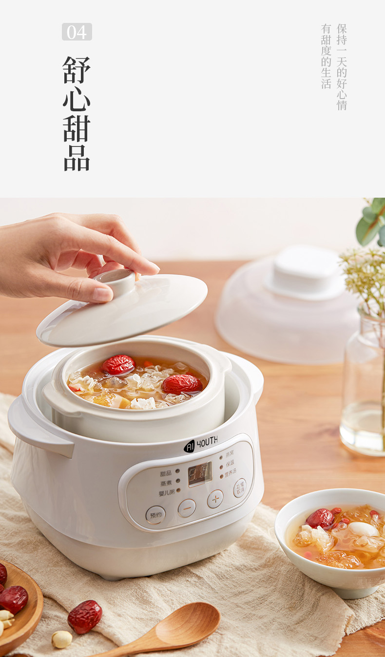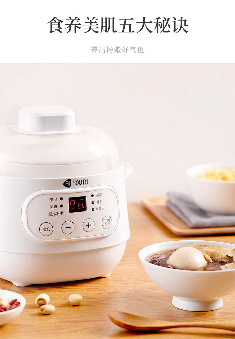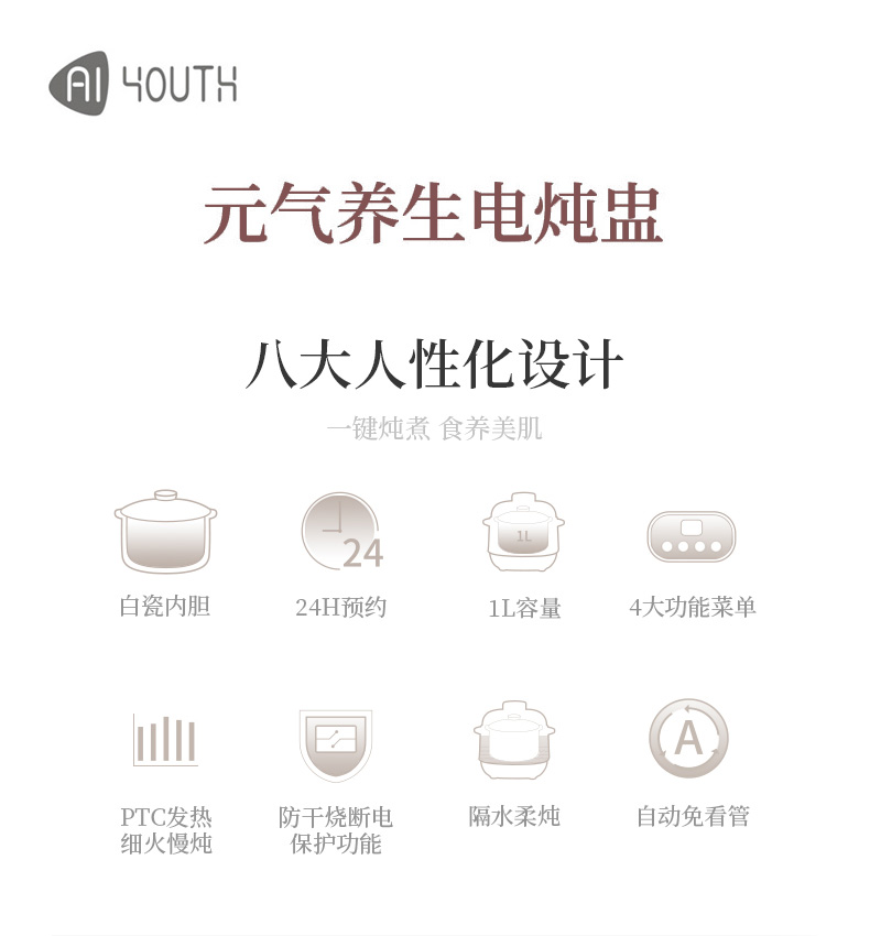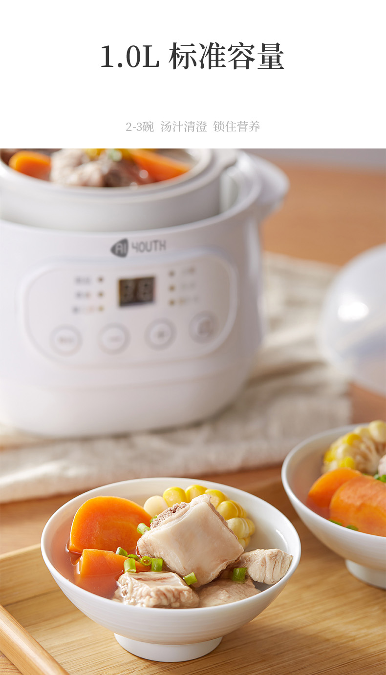 商品名称:AIYOUTH/艾青春1升电炖锅10A