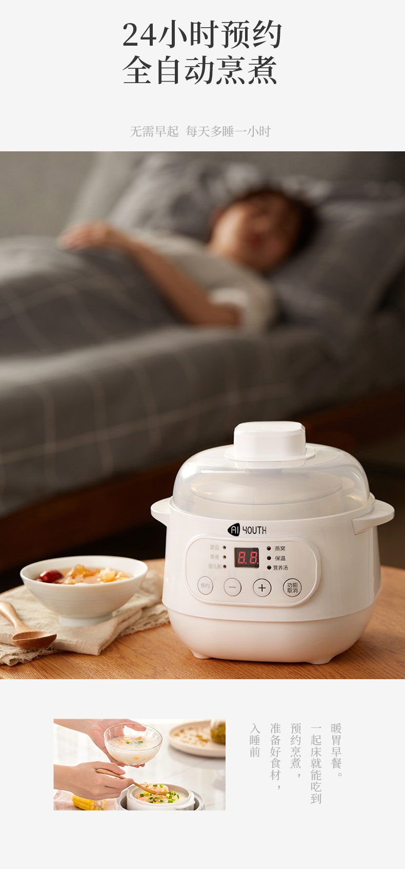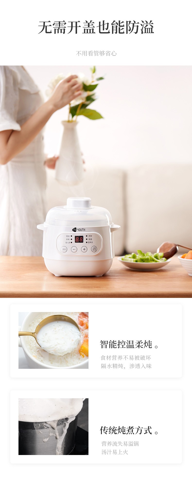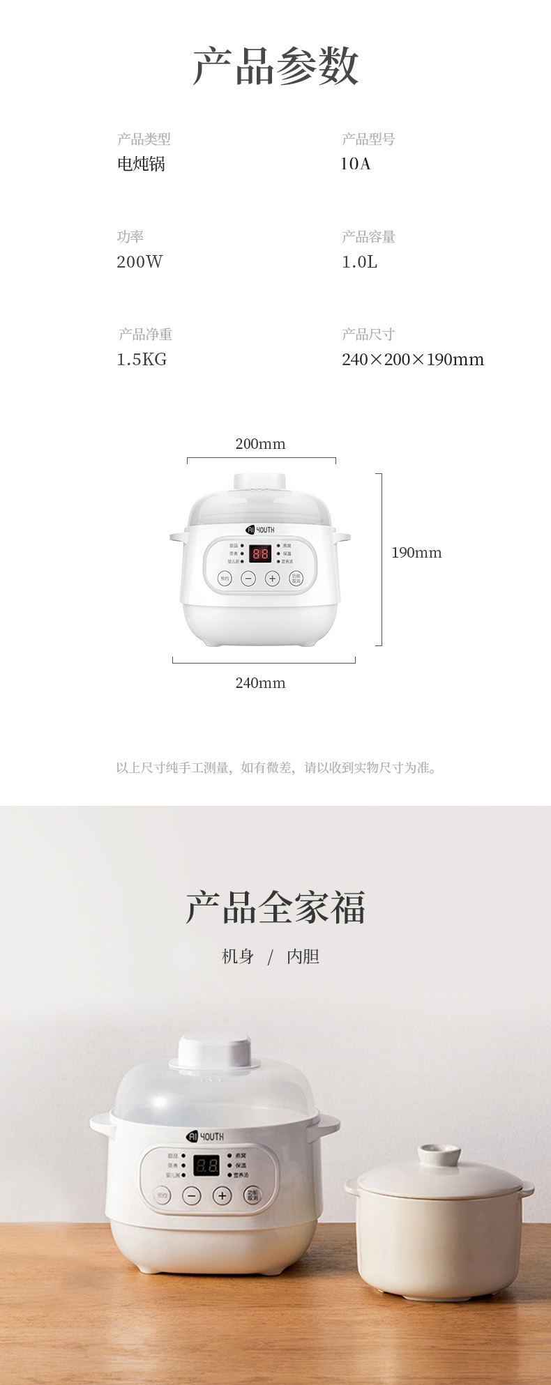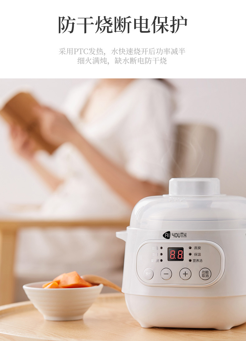 商品名称:AIYOUTH/艾青春1升电炖锅10A