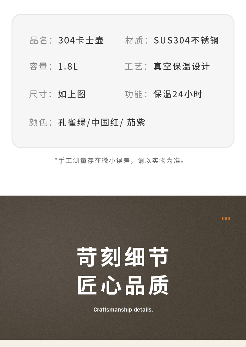 商品名称:SIGERUI/斯阁睿1.8升304卡士壶SGR-161 孔雀绿