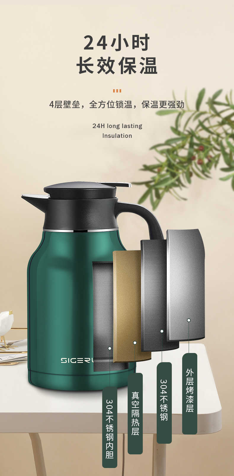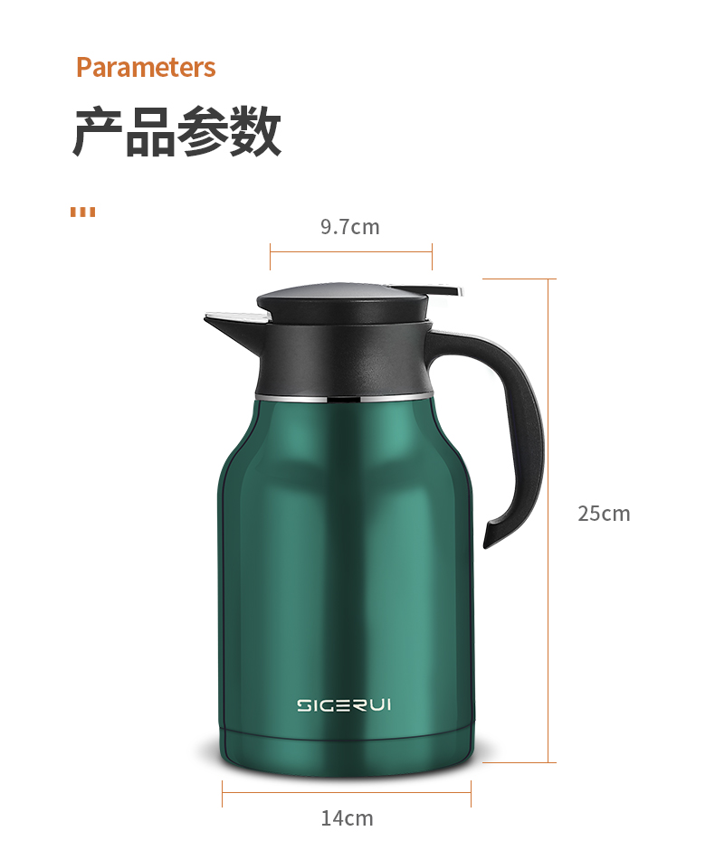 SIGERUI/斯阁睿1.8升304卡士壶SGR-161 孔雀绿