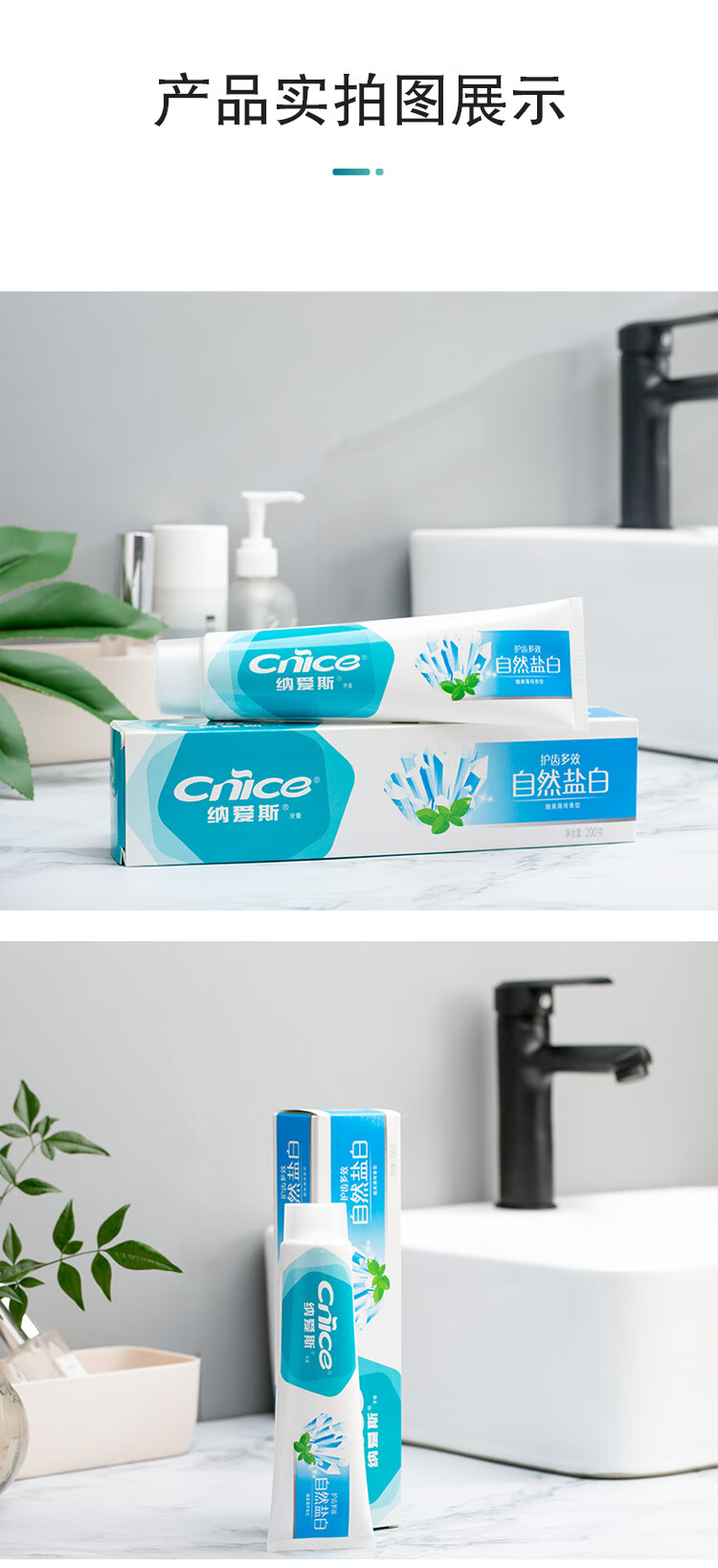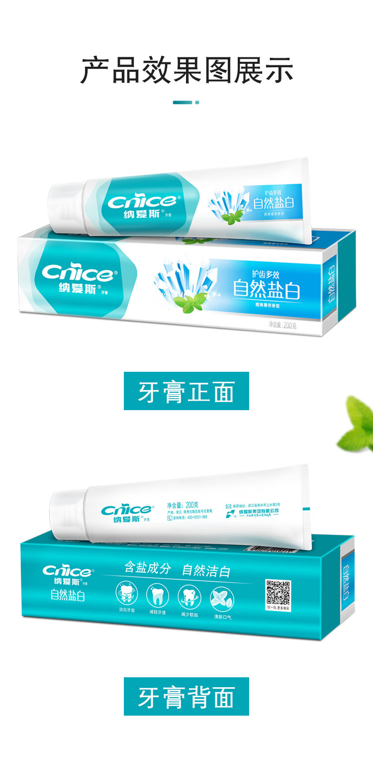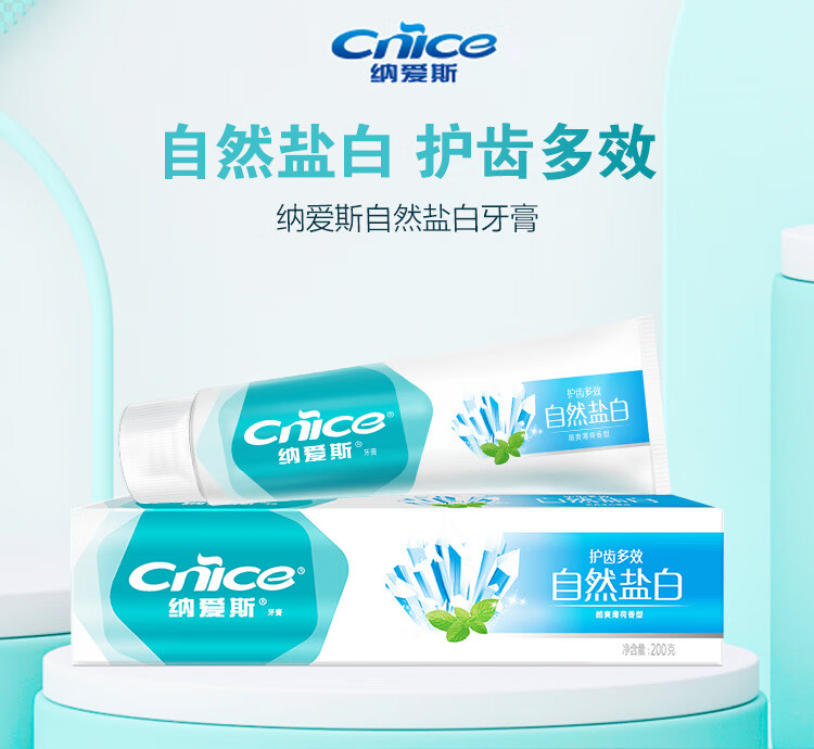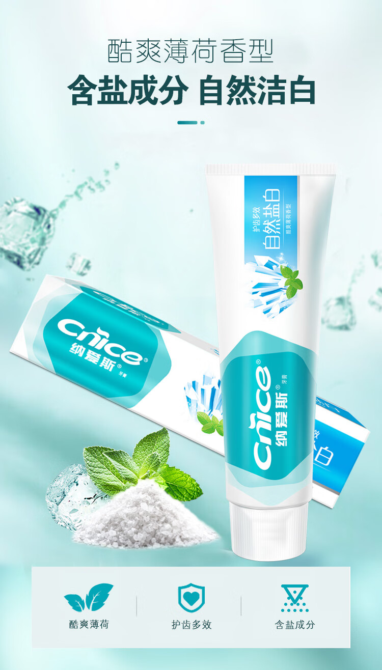 纳爱斯自然盐白牙膏-酷爽薄荷香型200g*4支
