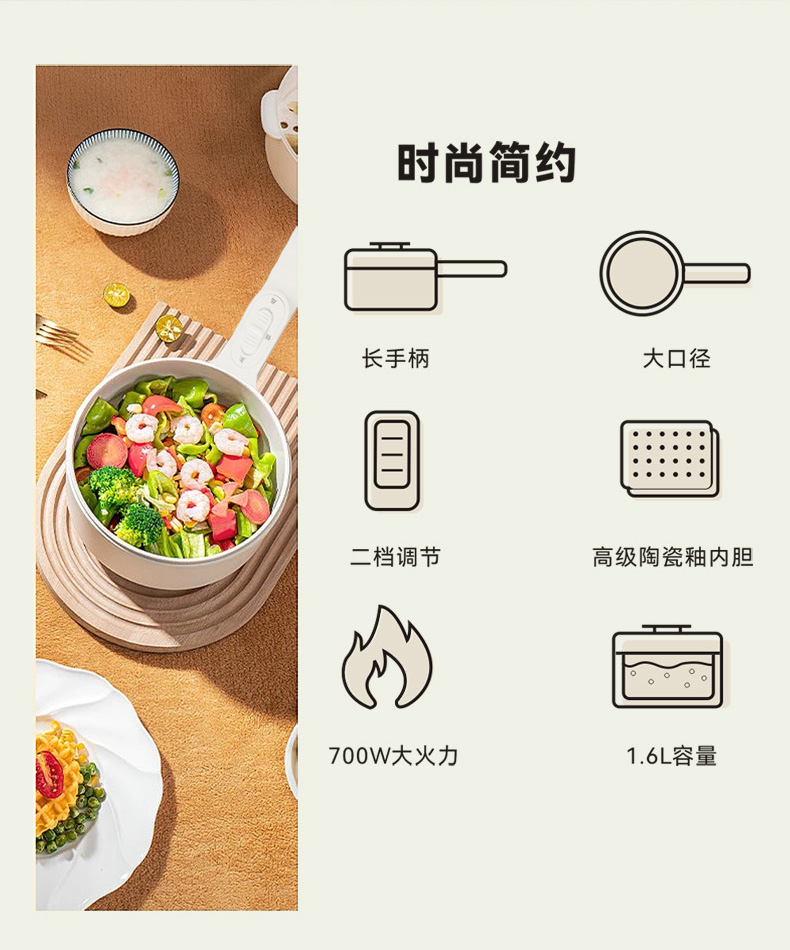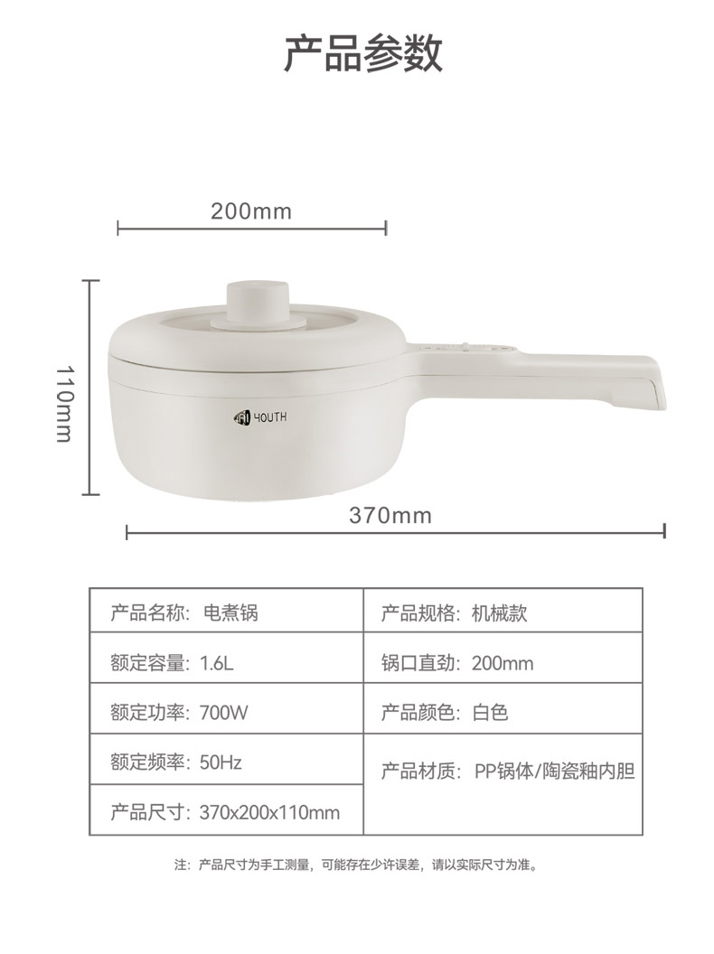 商品名称:AIYOUTH/艾青春1.6升电煮锅-白色AI-HG303 标配