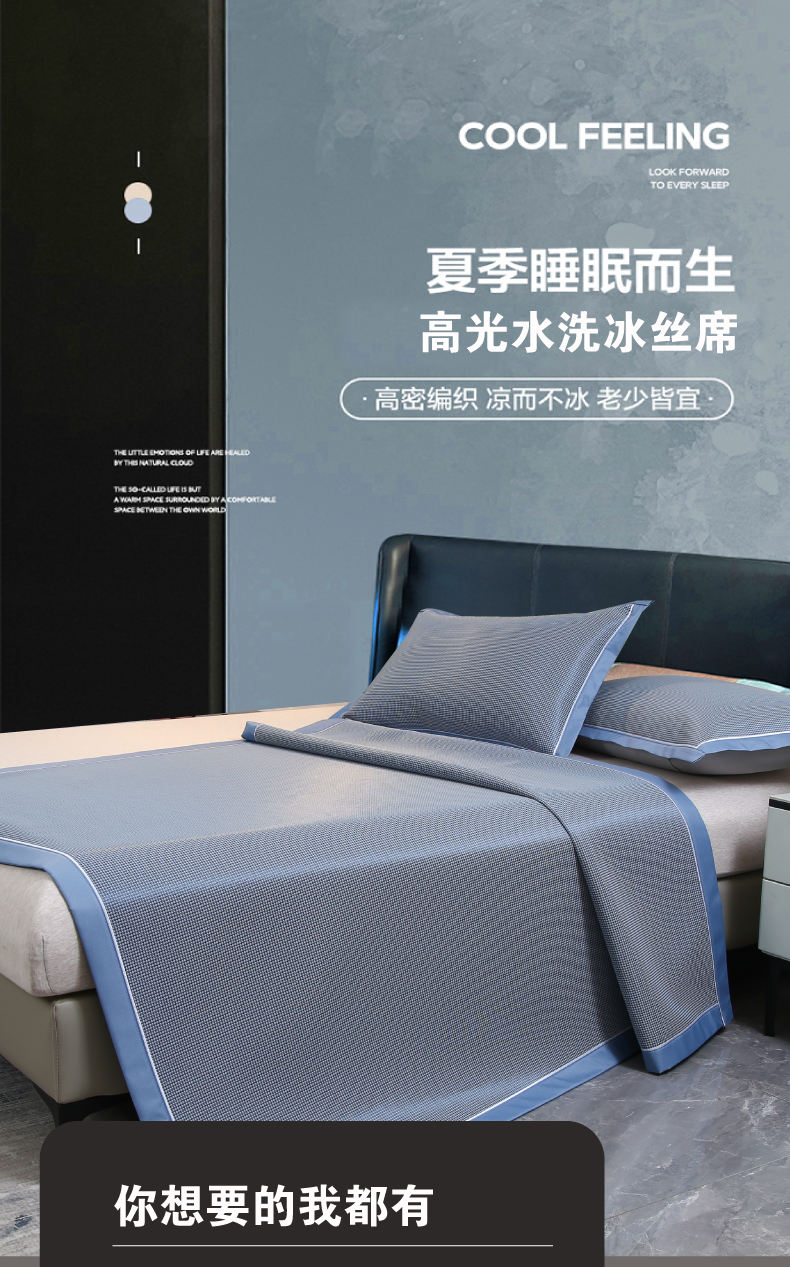 商品名称:M-RANDON/美缘登高光水洗冰丝席三件套180*200cm