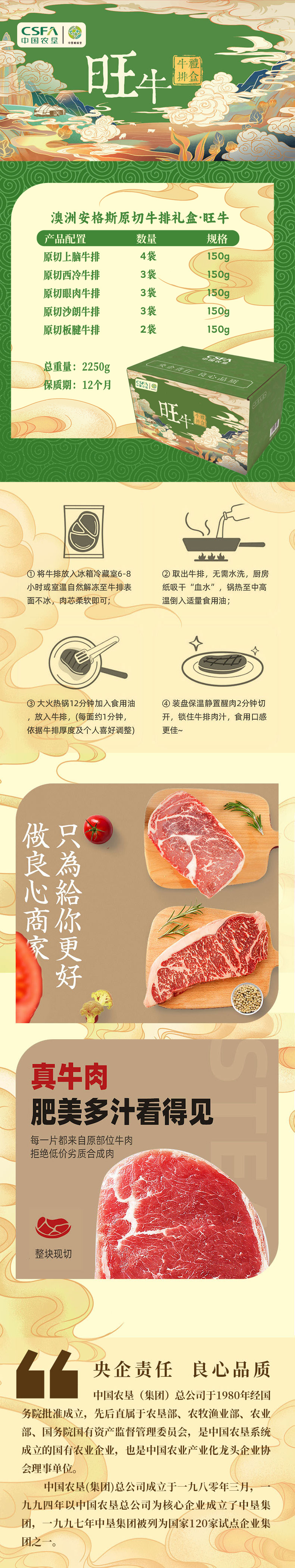 商品名称:【顺丰配送】CSFA/中国农垦中垦优选澳洲安格斯旺牛原切牛排礼盒2250g