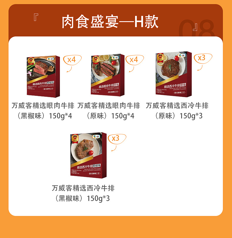 商品名称:【京东/顺丰配送】中粮万威客牛排礼盒H款2100g