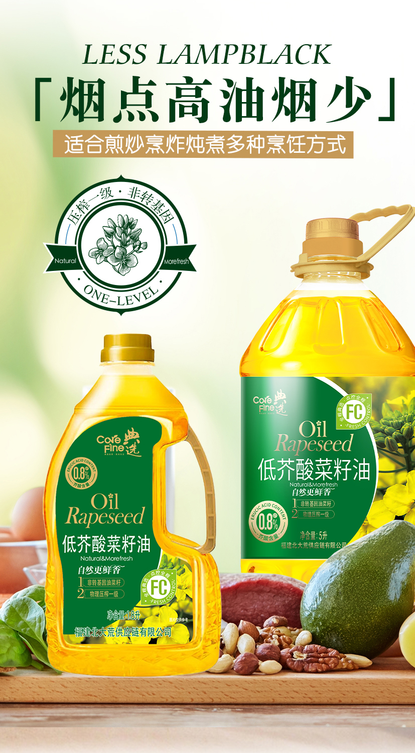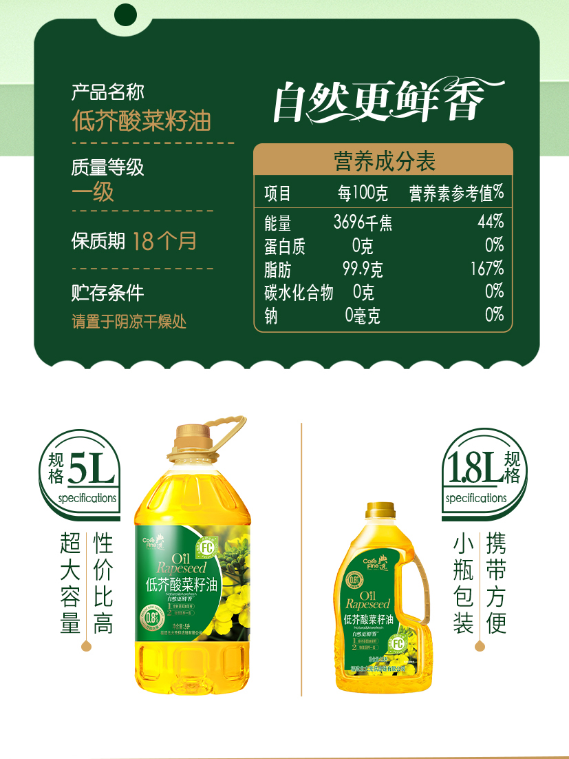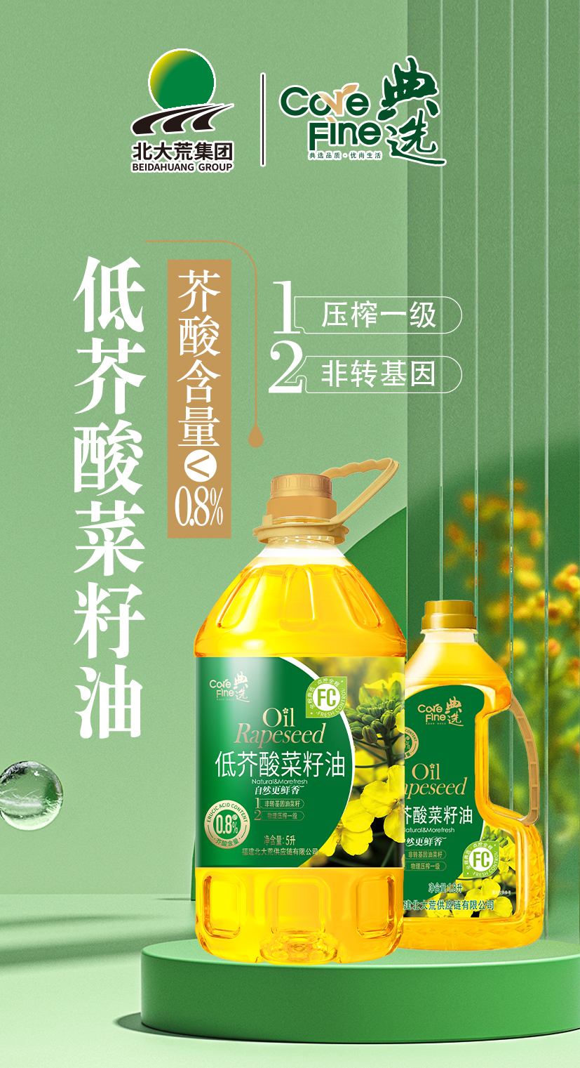 商品名称:北大荒典选非转基因低芥酸菜籽油 1.8L