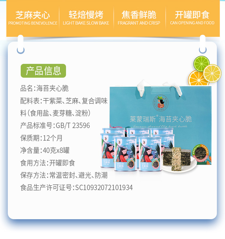 商品名称:Limerence/莱蒙瑞斯芝麻味海苔夹心脆礼盒320g