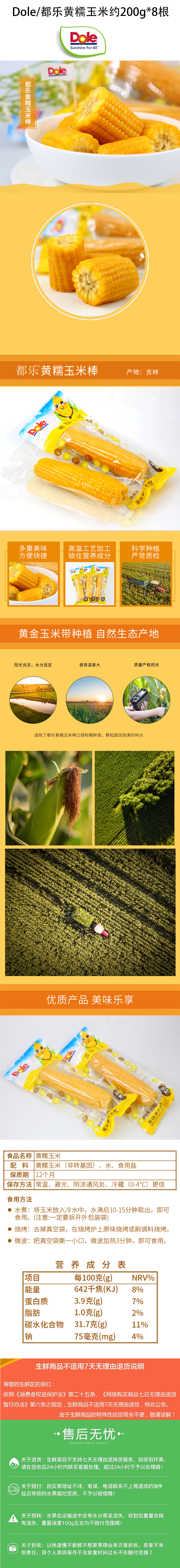 商品名称:【京东/顺丰配送】Dole/都乐黄糯玉米约200g*8根