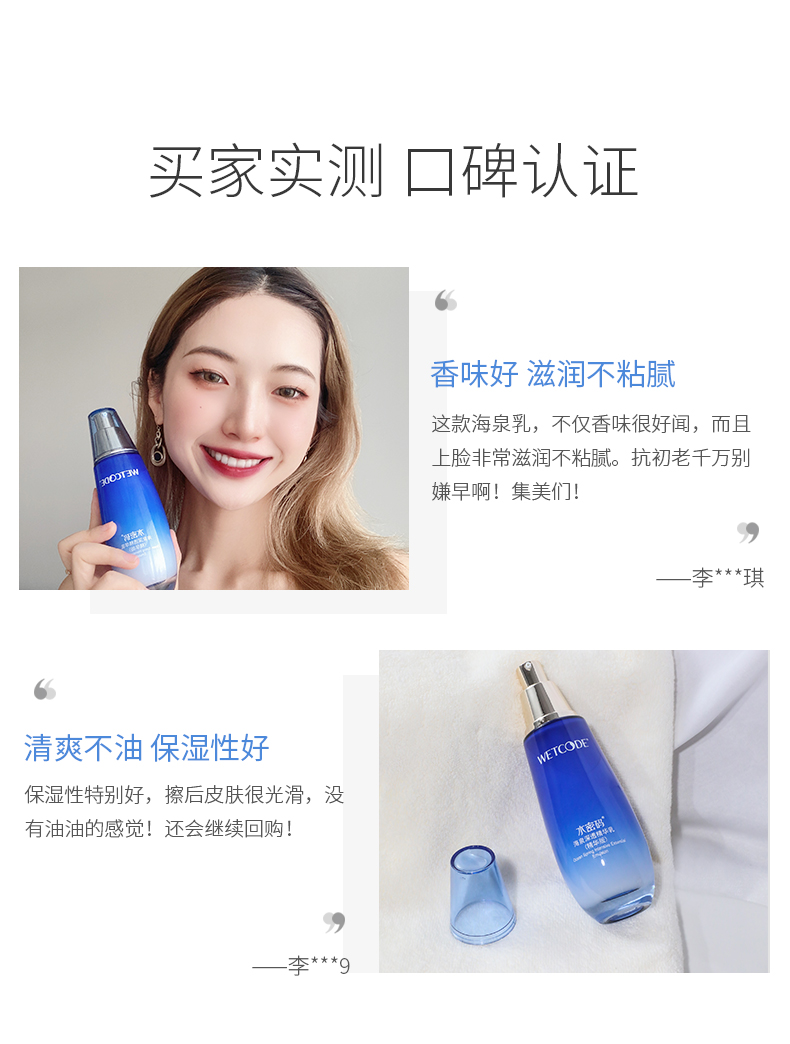 商品名称:WETCODE/水密码精华版海泉深透精华乳120ml*2瓶