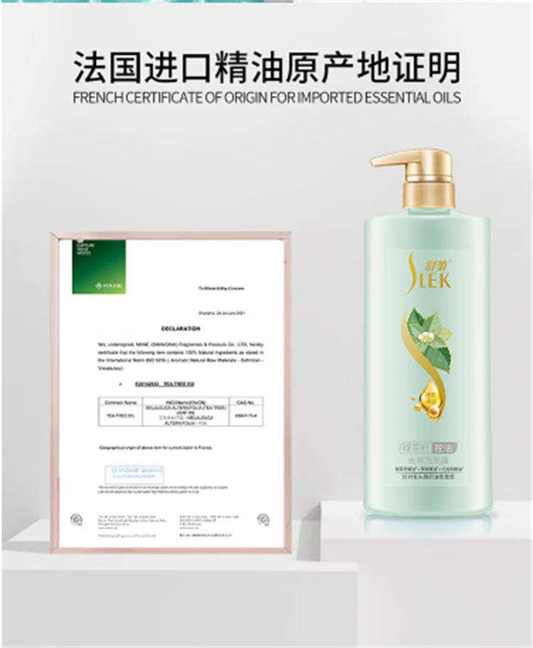 商品名称:SLEK/舒蕾绿茶籽控油去屑洗发露500ml+盈润保湿植萃精油沐浴露500ml