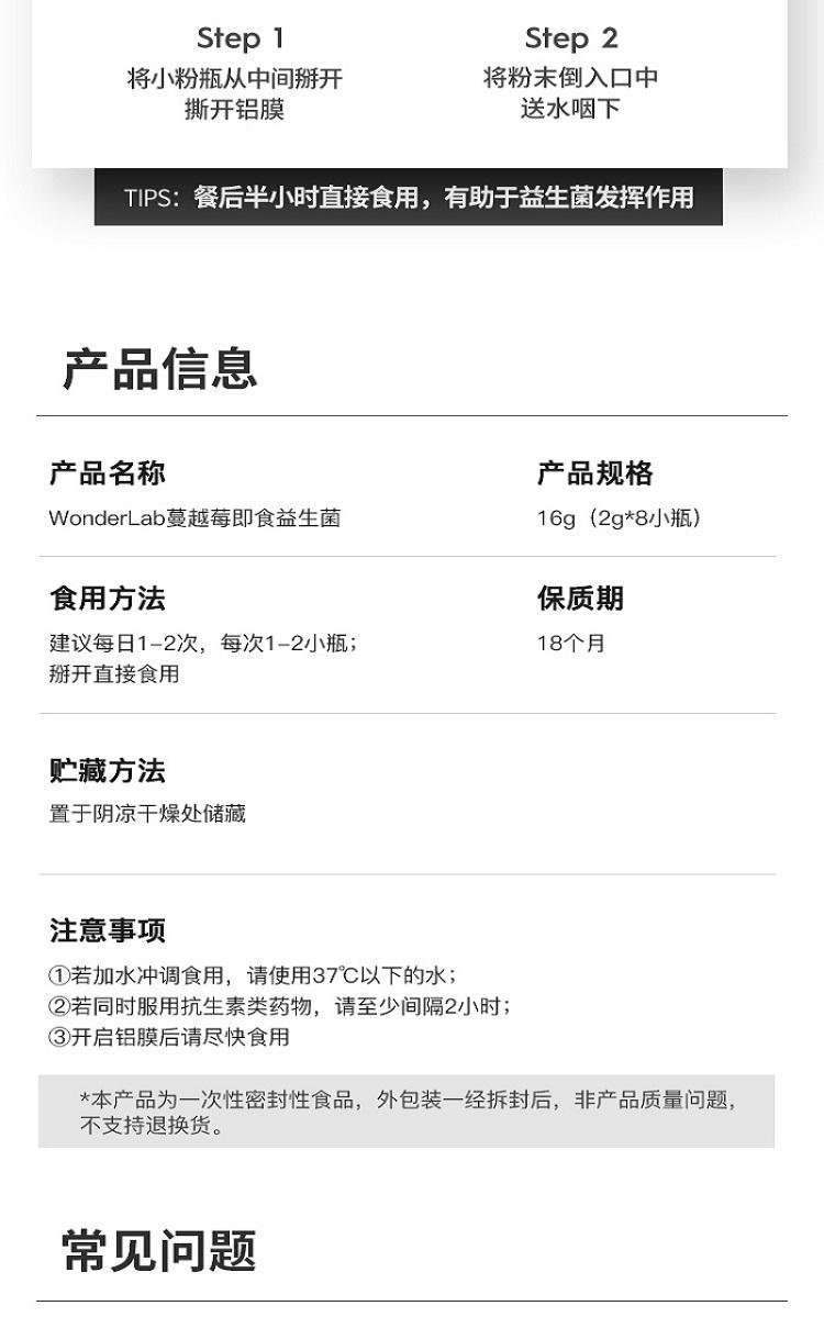 商品名称:WONDERLAB/万益蓝蔓越莓即食益生菌16g